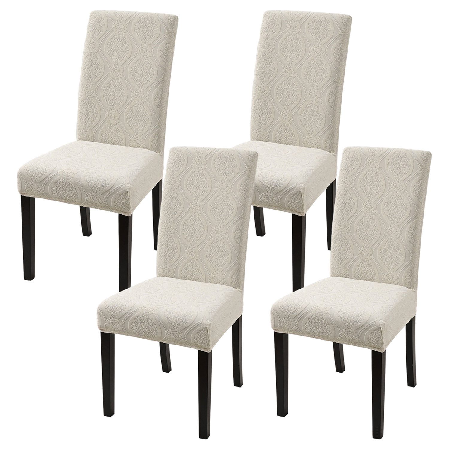 Das Jacquard-Musterdesign des Stuhlbezugstexturs, das Erscheinungsbild ist exquisit und modisch, geeignet für die meisten Esszimmerstühle ohne Armlehnen, weit verbreitet in Familien, Hotels, Büros, Hochzeiten, Partys und Bankette.