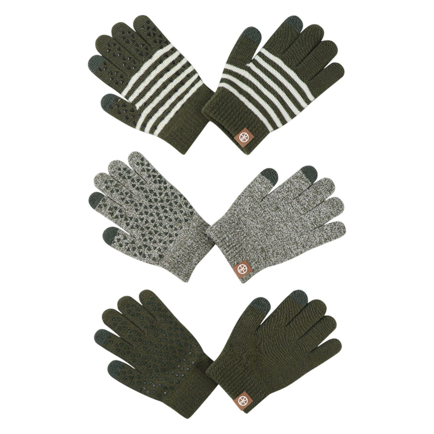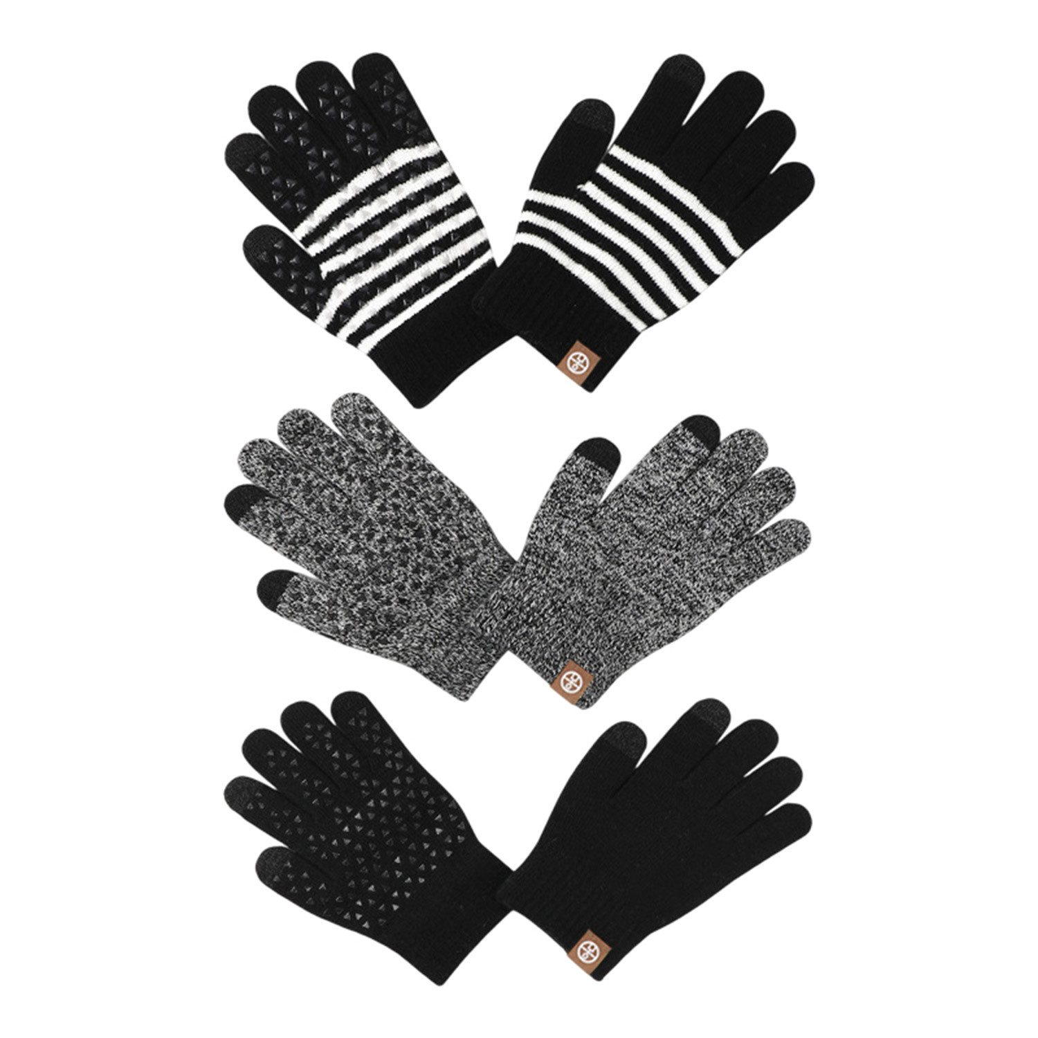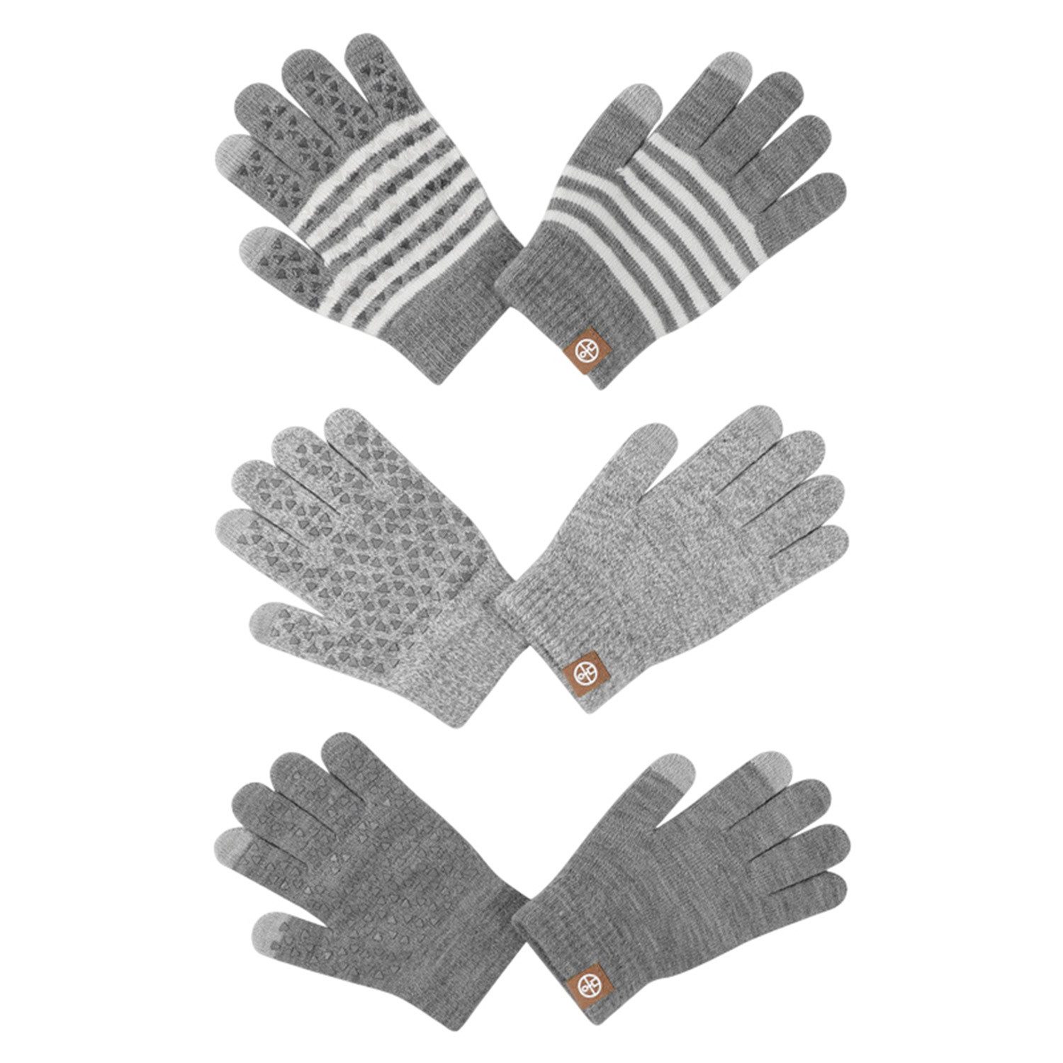 Praktisches Set mit drei unterschiedlich gestalteten Handschuhen. Ermöglicht einfaches Wechseln im Alltag.
