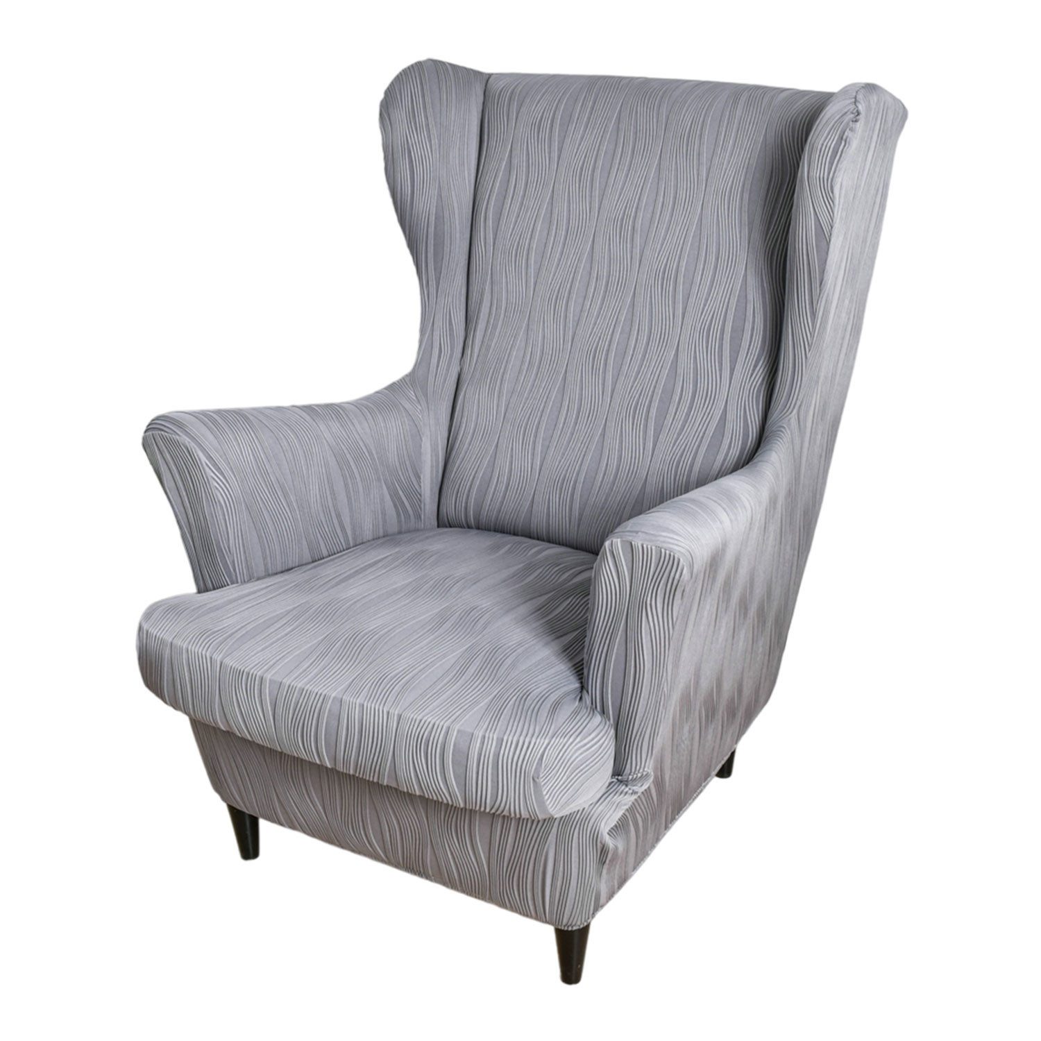 Elastischem Ohrensessel Überzug, Abnehmbar Husse Für Ohrensessel 2 Stück Ohrensessel Schonbezuge, Stuhlbezug mit Armlehne Hohe Rückenlehne; Flügelstuhlbezug + Kissenbezug