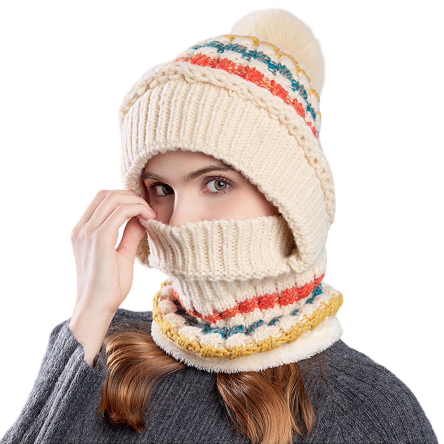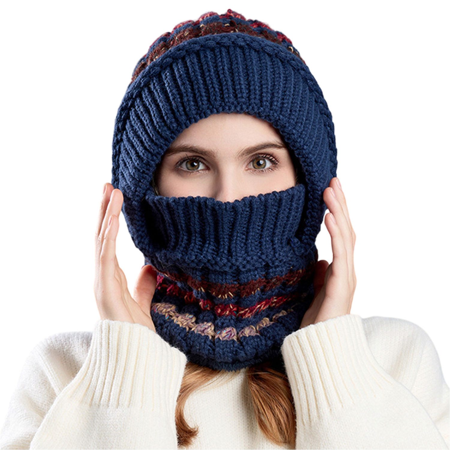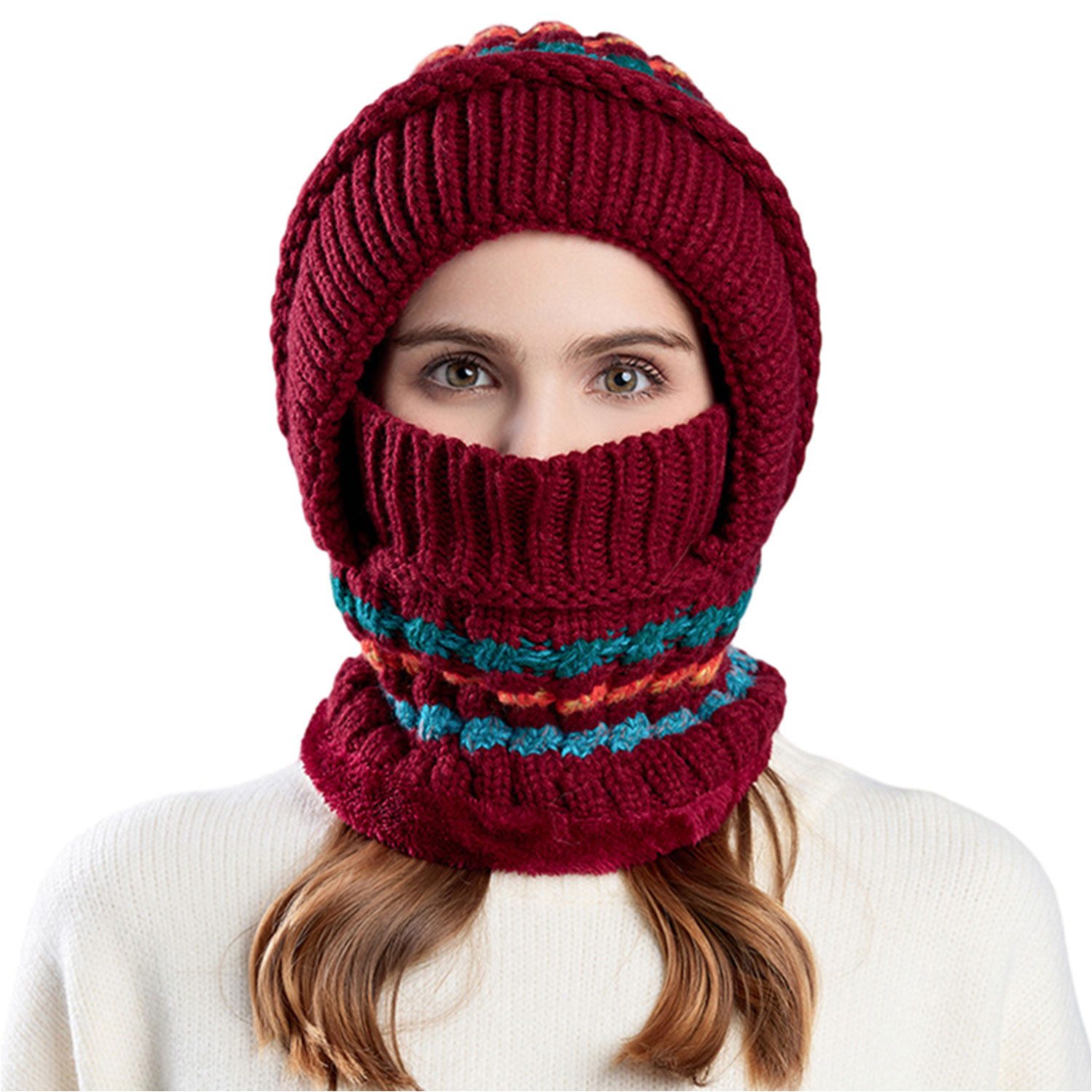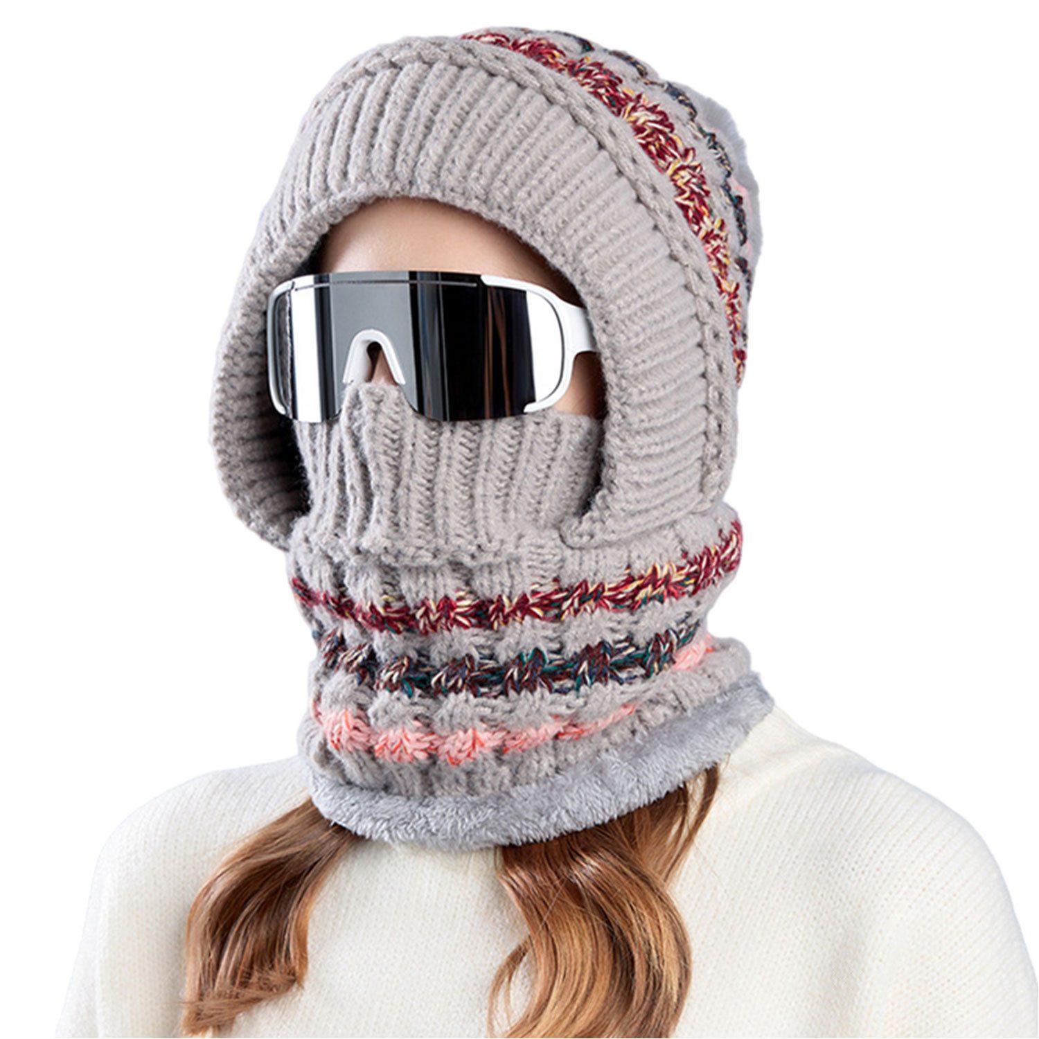 Die einteilige Mütze kann dem Eindringen von kaltem Wind effektiv widerstehen und sorgt dafür, dass Kopf und Hals im Wind warm bleiben. Das versiegelte Design kann das Eindringen von Wind reduzieren und Ihnen ein angenehmes Outdoor-Erlebnis bieten.