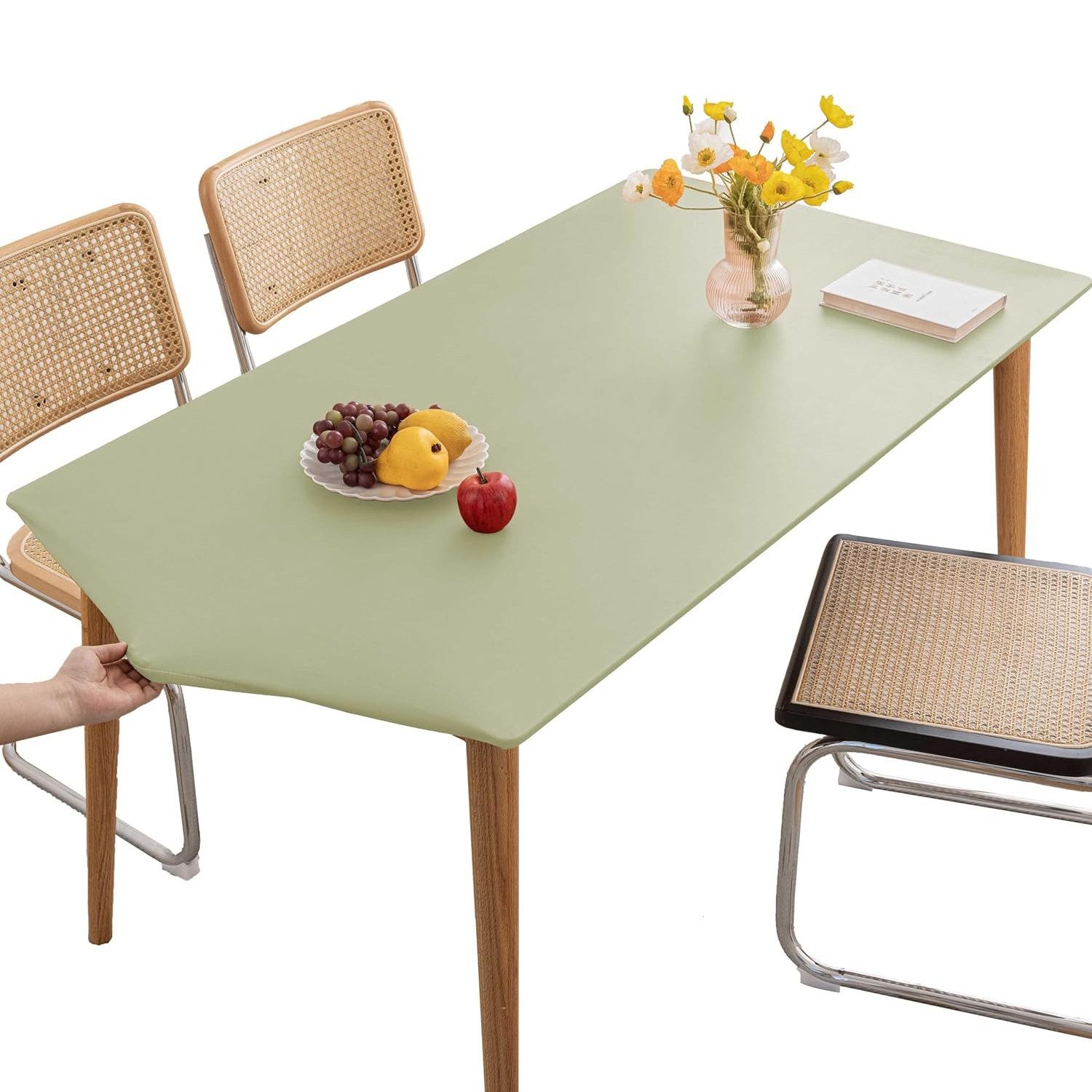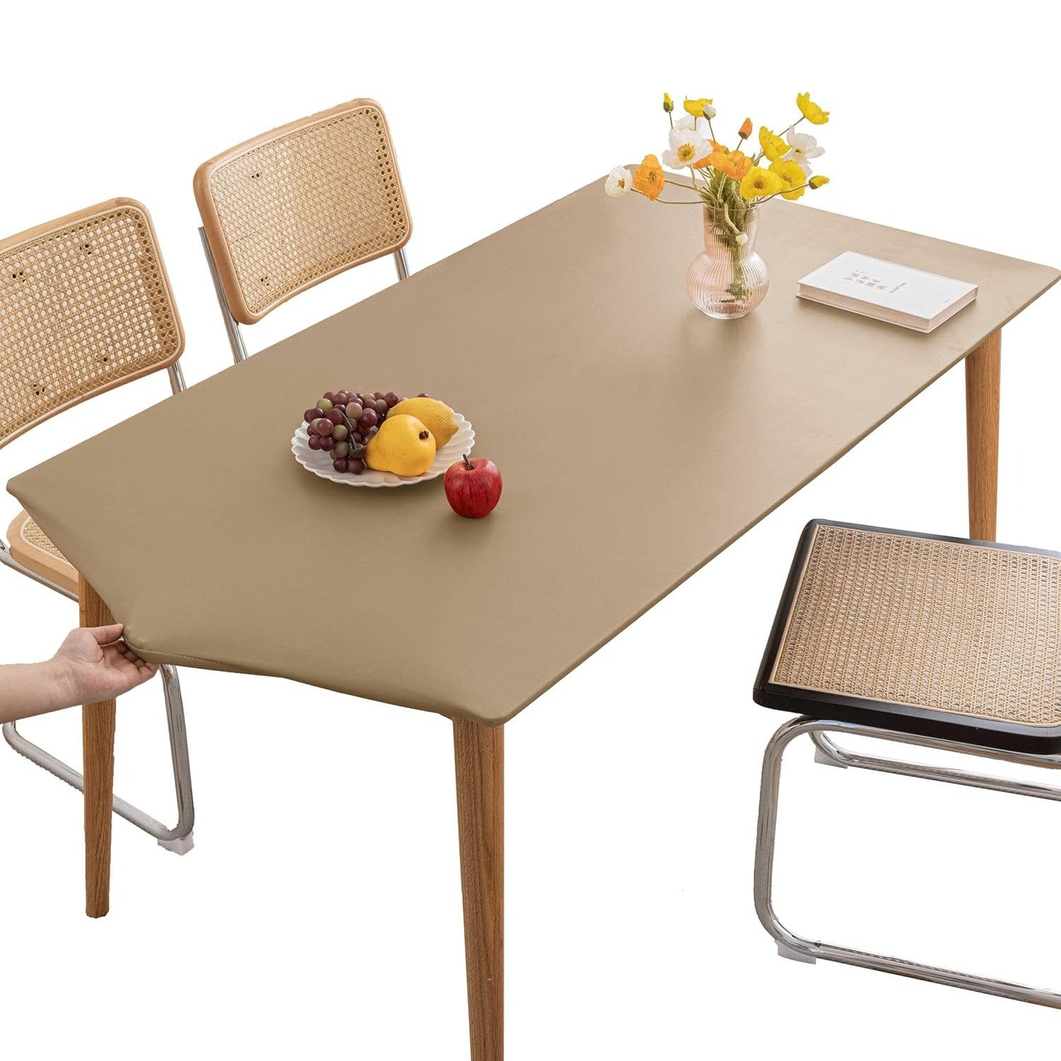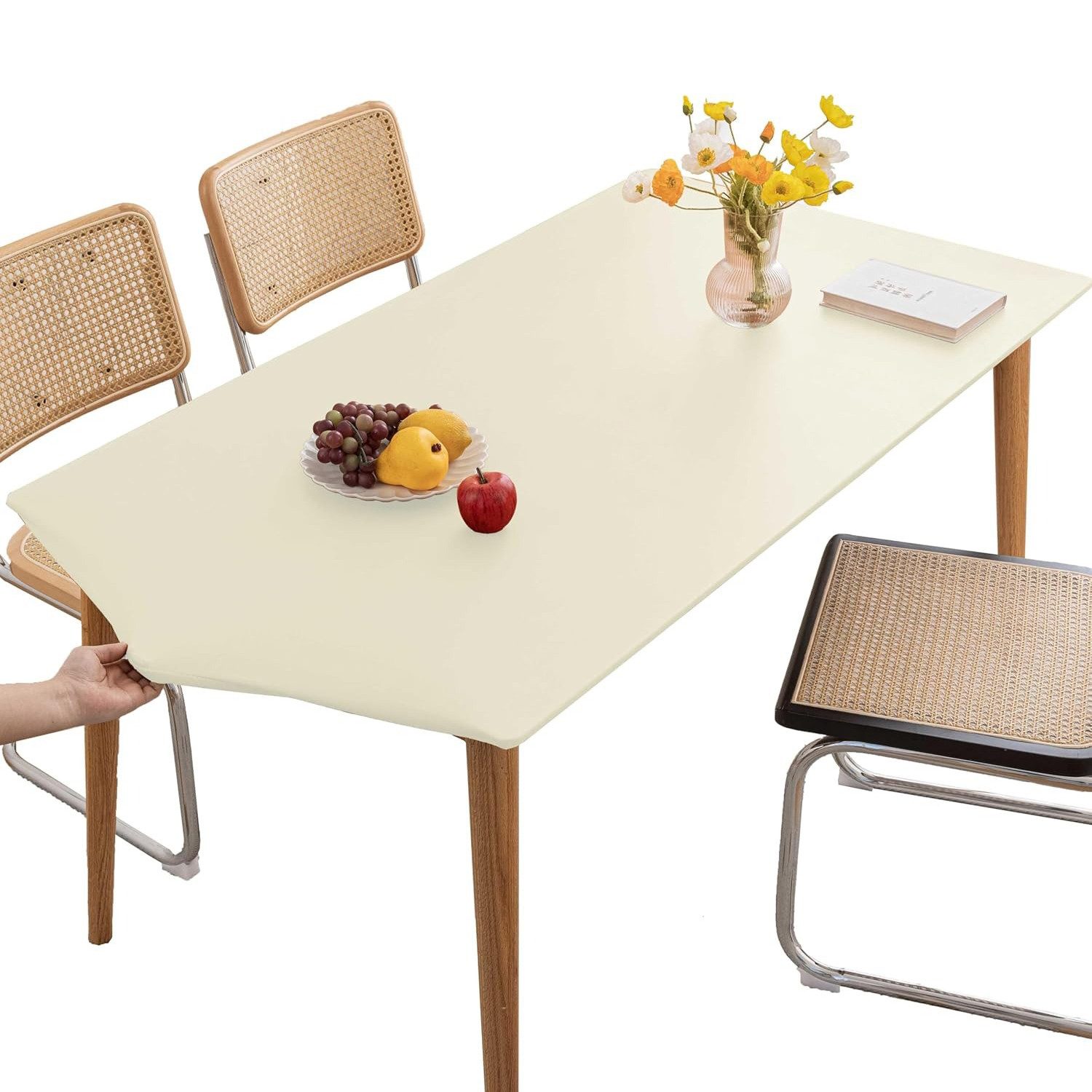 Die rechteckige Tischdecke ist von einem elastischen Bandkantendesign umgeben, das eine einfache Installation und Befestigung ermöglicht und sicherstellt, dass die Tischdecke fest an der Tischplatte anliegt und ein Verrutschen oder Verschieben verhindert, geeignet für rechteckige Tische unterschiedlicher Размер und einfach zu bedienen.