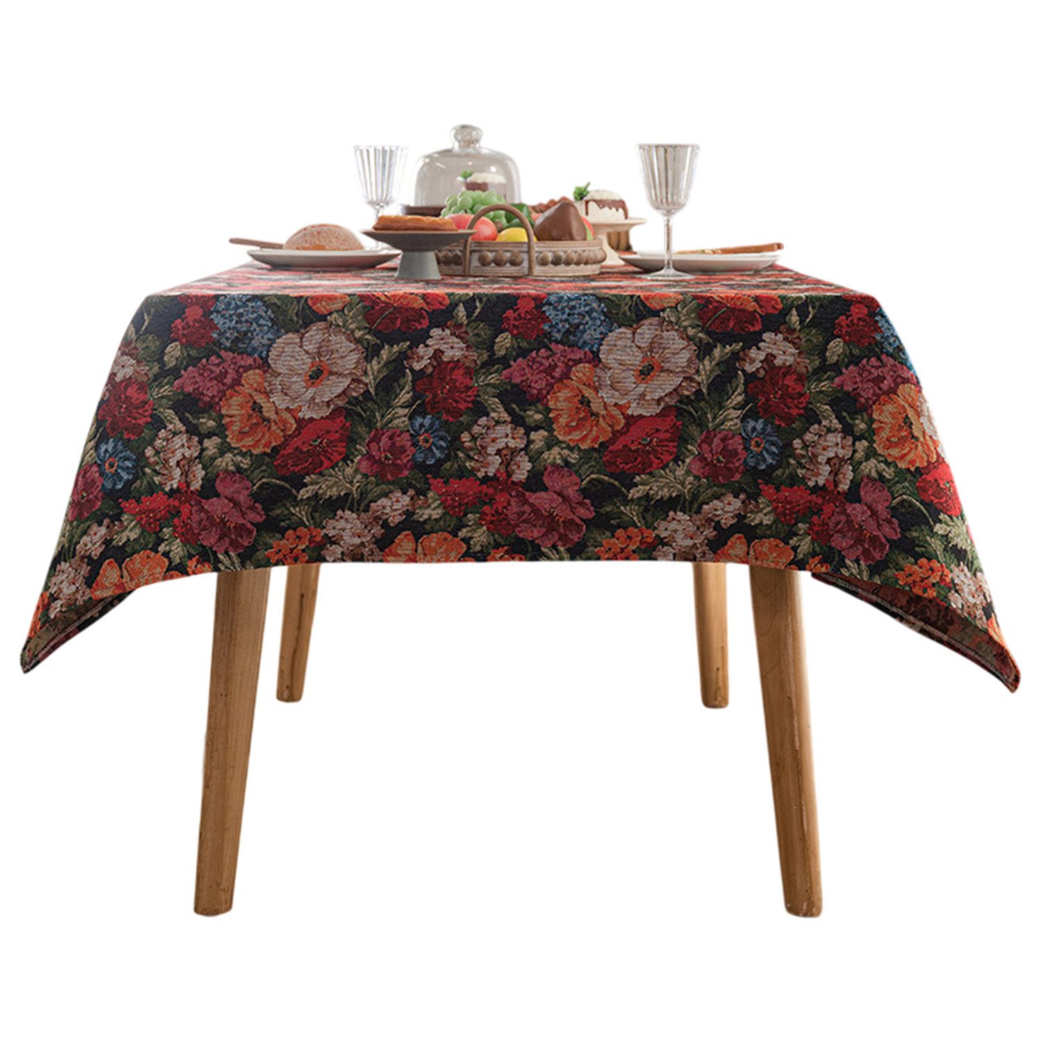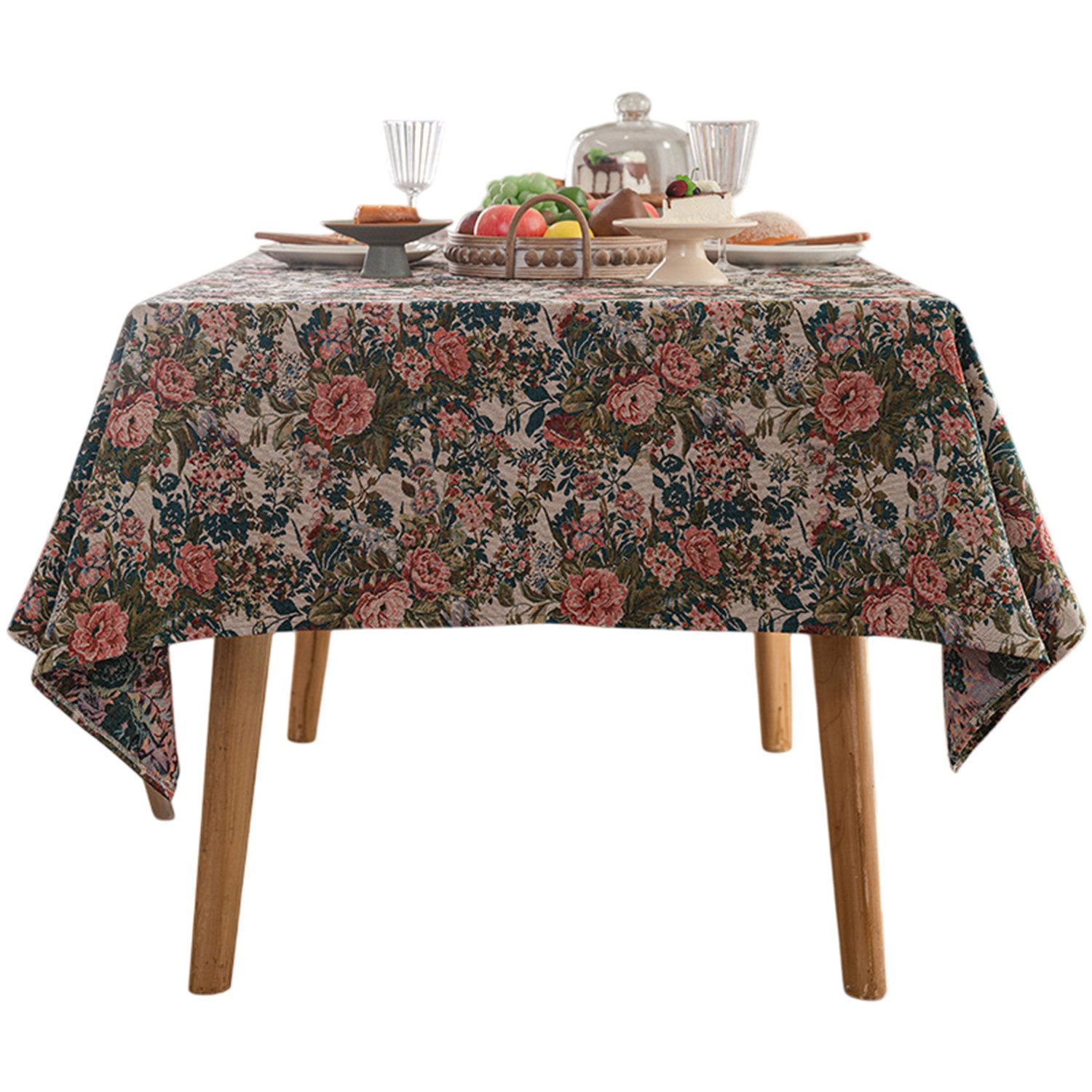 Jacquard-Tischdecke im Vintage-Stil, Leinenstruktur mit Retro-Blumenmuster für Esszimmer, 1 Stück, staubdichte Tischdecke für Camping, Party, Familienessen