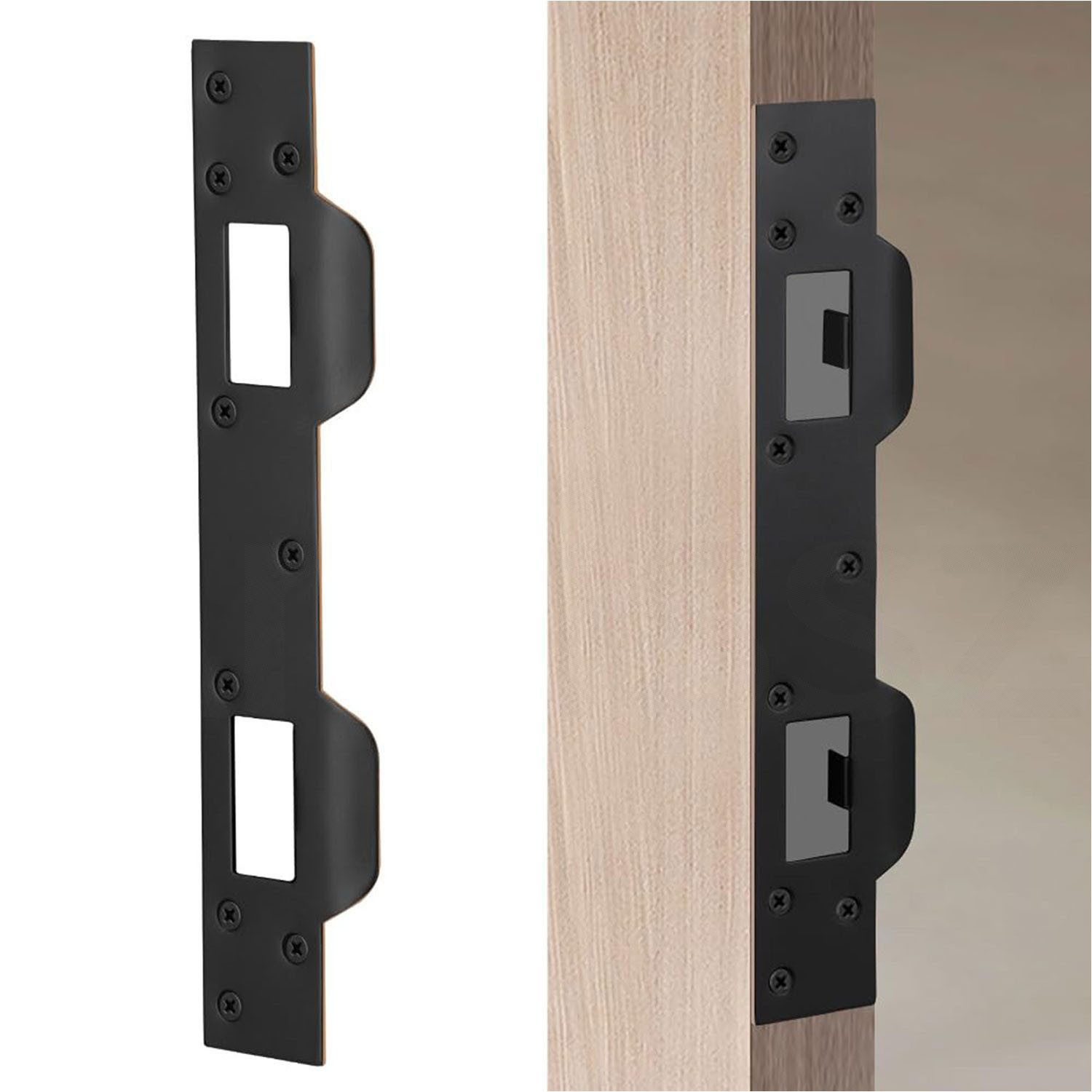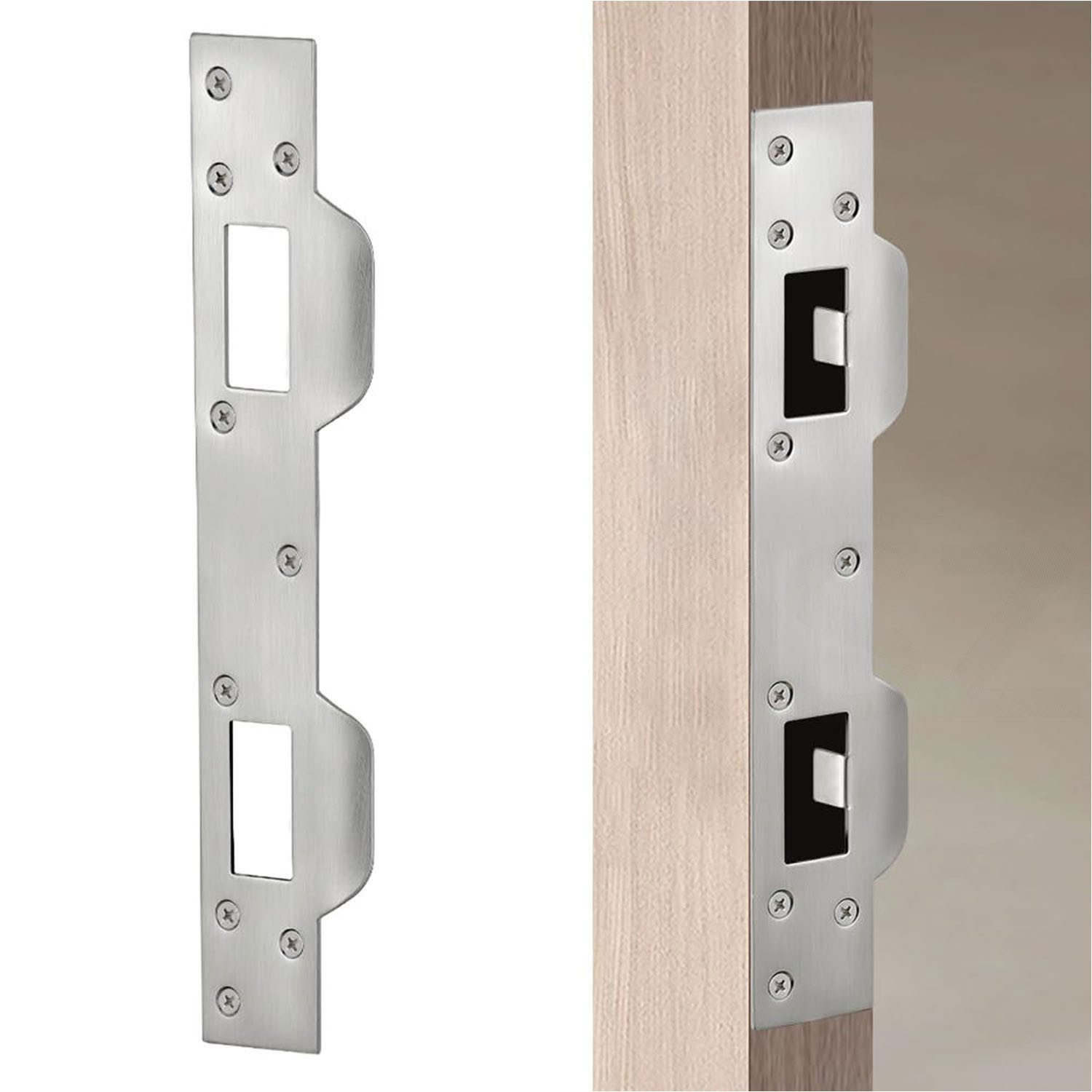 Einteiliges Design zum Ersetzen standardmäßiger Einzelverriegelungsplatten. Es kann verwendet werden, um Unvollkommenheiten oder beschädigte Stellen in Türrahmen zu verbergen. Das Problem, dass die Türgrifffalle und die Schlosszunge nicht stecken bleiben können, wurde behoben.