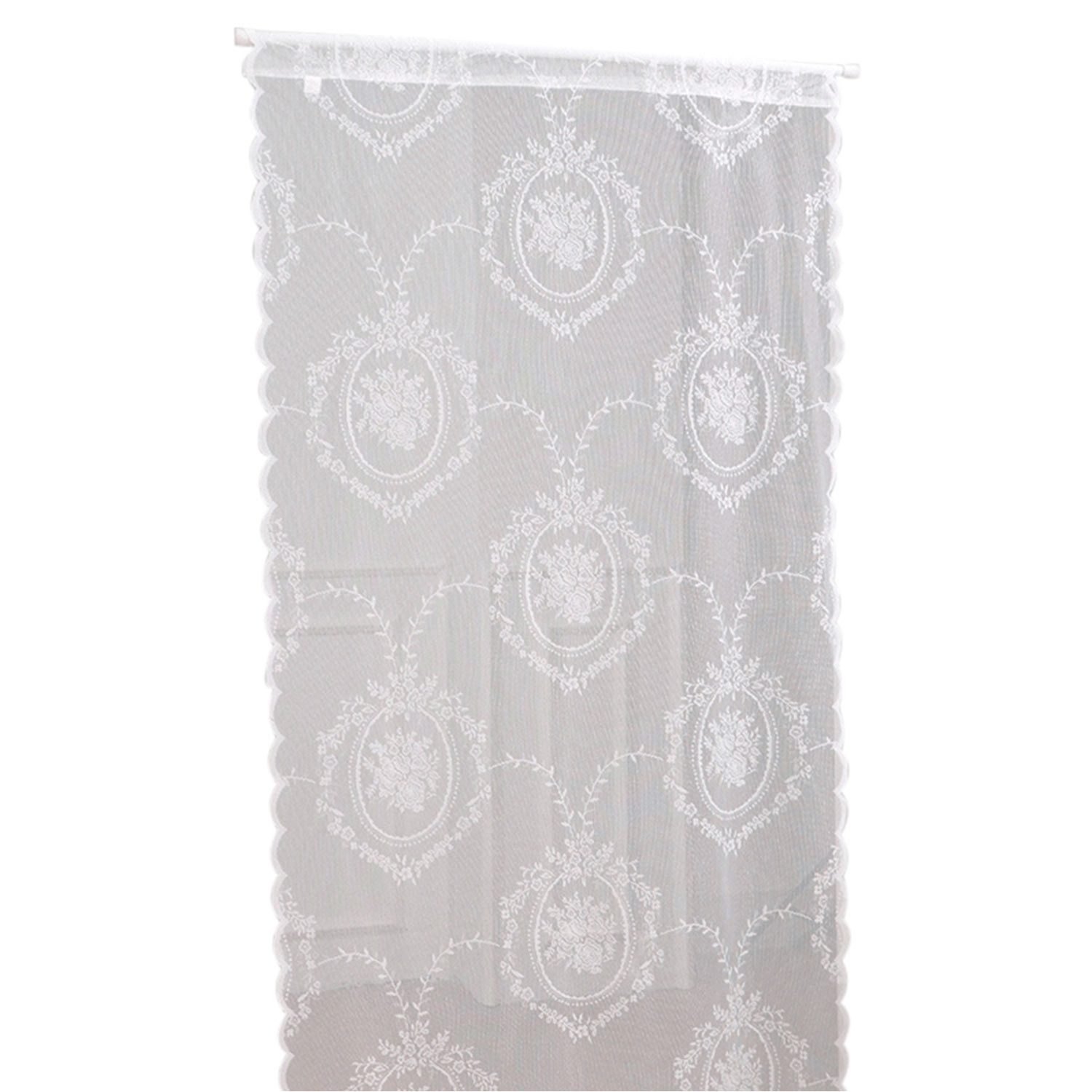 Diese weißen floralen Spitzenvorhänge dämpfen grelles Licht und lassen gleichzeitig Licht herein. So kommen Sonnenlicht und frische Luft in Ihren Raum und bieten ausreichend Privatsphäre.