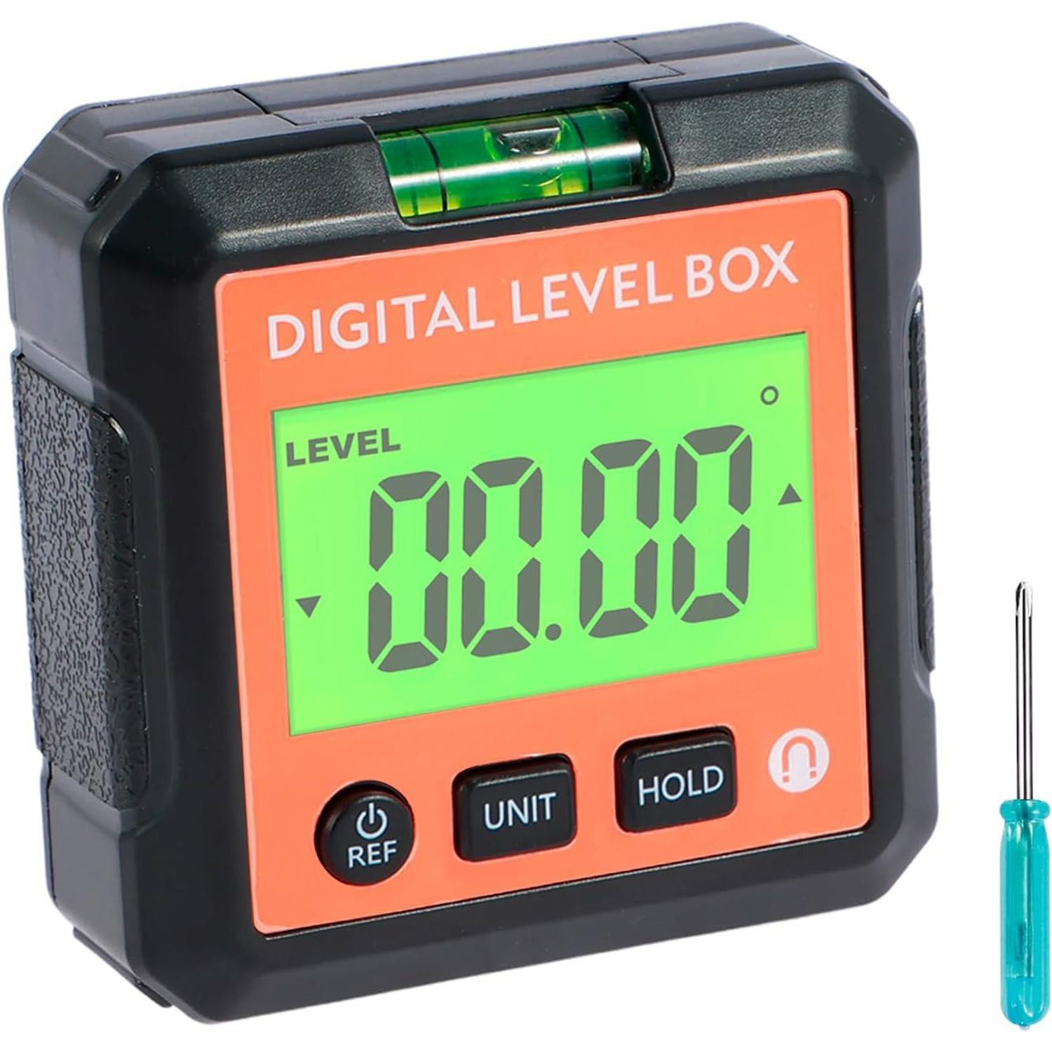 Winkelmesser geht um präzise Schnittwinkel in der Holzbearbeitung, genaue Kontrolle von Reifenmontagewinkeln in der Automobilreparaturindustrie und präzise Positionierung von Arbeitswinkeln und Armdrehwinkeln bei Werkzeugmaschinen. Mini-Digital-Winkelmesser, unser digitaler Winkelmesser Gauge ist ein vielseitiges und tragbares Werkzeug, das Winkelmesser, Neigungsmesser und Nivellierlineal in einem Gerät vereint