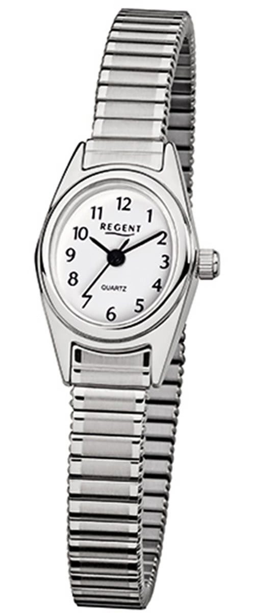 Die Elegant Uhr der Marke Regent hat ein schönes Armband aus Edelstahl in silber mit Zugband. Eine Uhr aus der Regent Mini Kollektion für Damen in der Gehäusefarbe silber mit Quarzwerk. Die Analoguhr mit Mineralglas hat ein Zifferblatt in der Farbe weiß. Die Form der Uhr ist rund und das Gehäuse ist klein ca. 19mm.