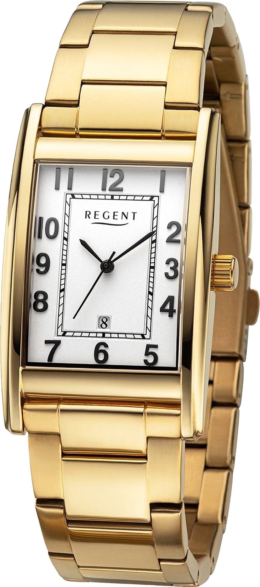 Die Casual Uhr der Marke Regent hat ein schönes Armband aus Metall in gold mit Faltschließe. Eine Uhr aus der Regent Metallarmband Kollektion für Herren in der Gehäusefarbe gold mit Quarzwerk. Die Analoguhr mit Mineralglas hat ein Zifferblatt in der Farbe weiß. Die Form der Uhr ist rund und das Gehäuse ist klein ca. 29mm im Durchmesser.