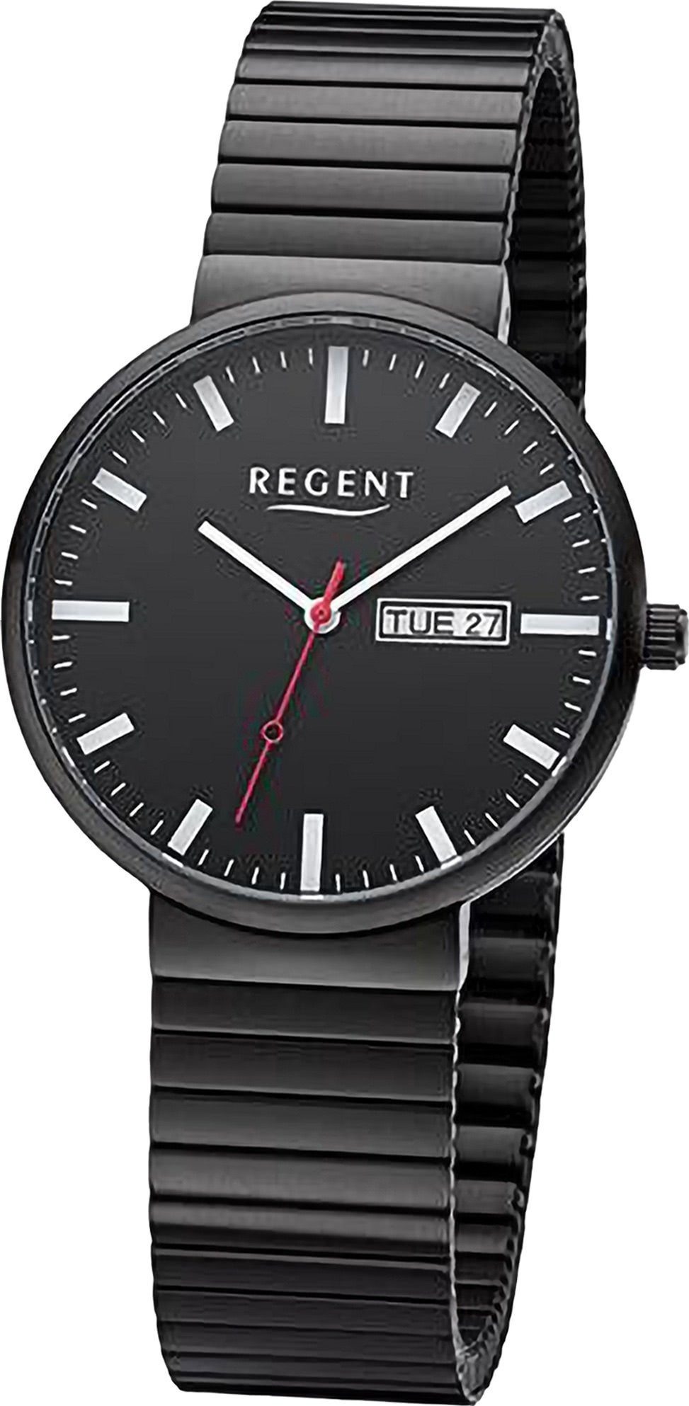 Die Casual Uhr der Marke Regent hat ein schönes Armband aus Edelstahl in schwarz mit Zugband. Eine Uhr aus der Regent Metallarmband Kollektion für Herren in der Gehäusefarbe schwarz mit Quarzwerk. Die Analoguhr mit Mineralglas hat ein Zifferblatt in der Farbe schwarz. Die Form der Uhr ist rund und das Gehäuse ist mittel ca. 38mm im Durchmesser.