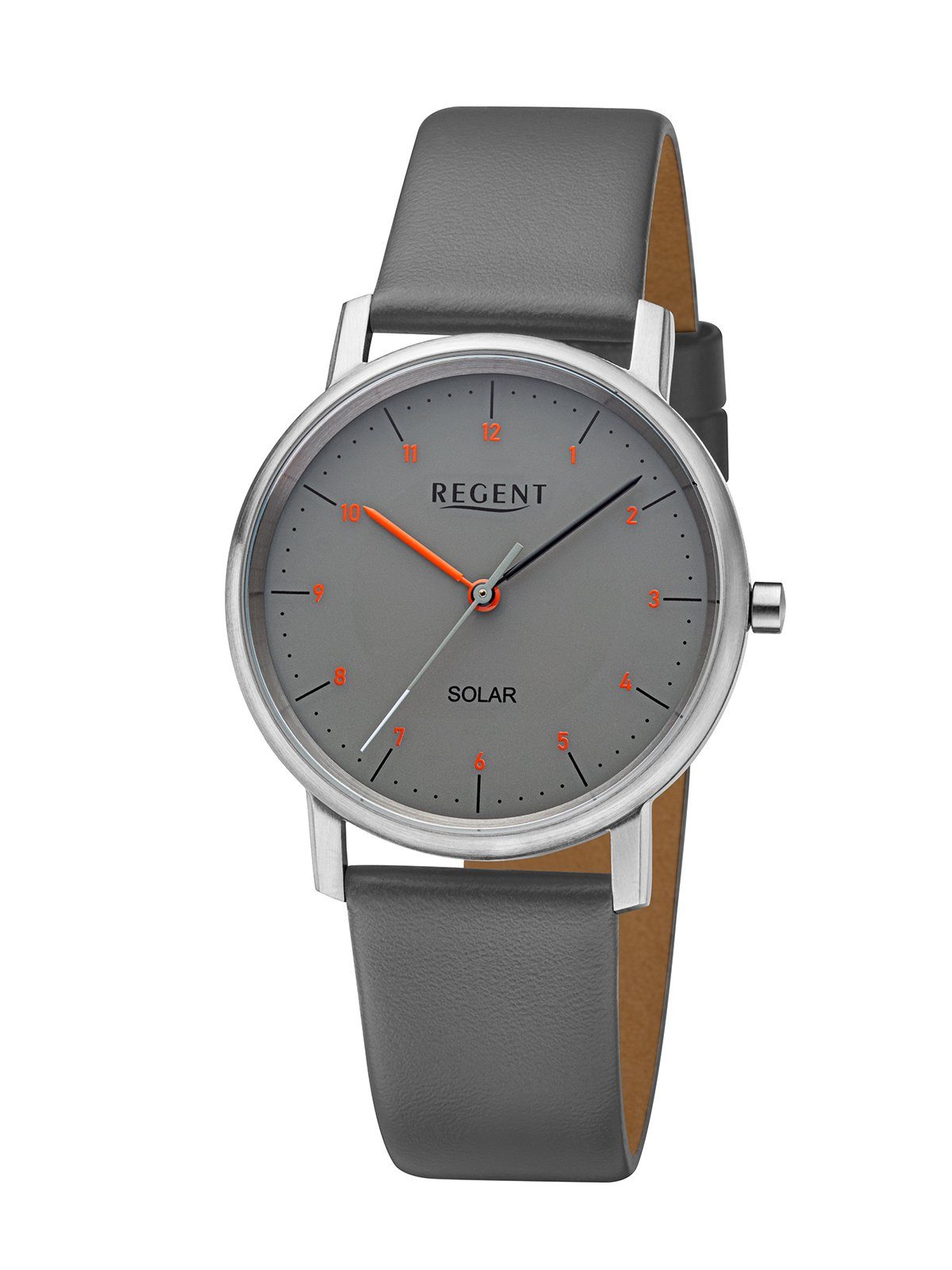 Die Fashion Uhr der Marke Regent hat ein schönes Armband aus Leder in schwarz mit Dornschließe. Eine Uhr aus der Regent Lederarmband Kollektion für Damen in der Gehäusefarbe silber mit Quarzwerk. Die Analoguhr mit Mineralglas hat ein Zifferblatt in der Farbe weiß. Die Form der Uhr ist rund und das Gehäuse ist mittel ca. 35mm im Durchmesser.