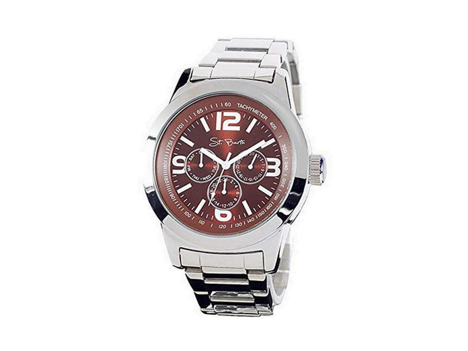 braunes Ziffernblatt 3 ATM wasserdicht Wochentags-, 24h- und Datumsanzeige sportliche, robuste Ausführung Edelstahlband, silberfarbend