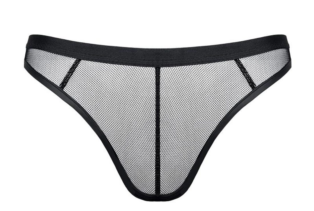 Herren wetlook String transparent mit Netz Einsätzen in schwarz