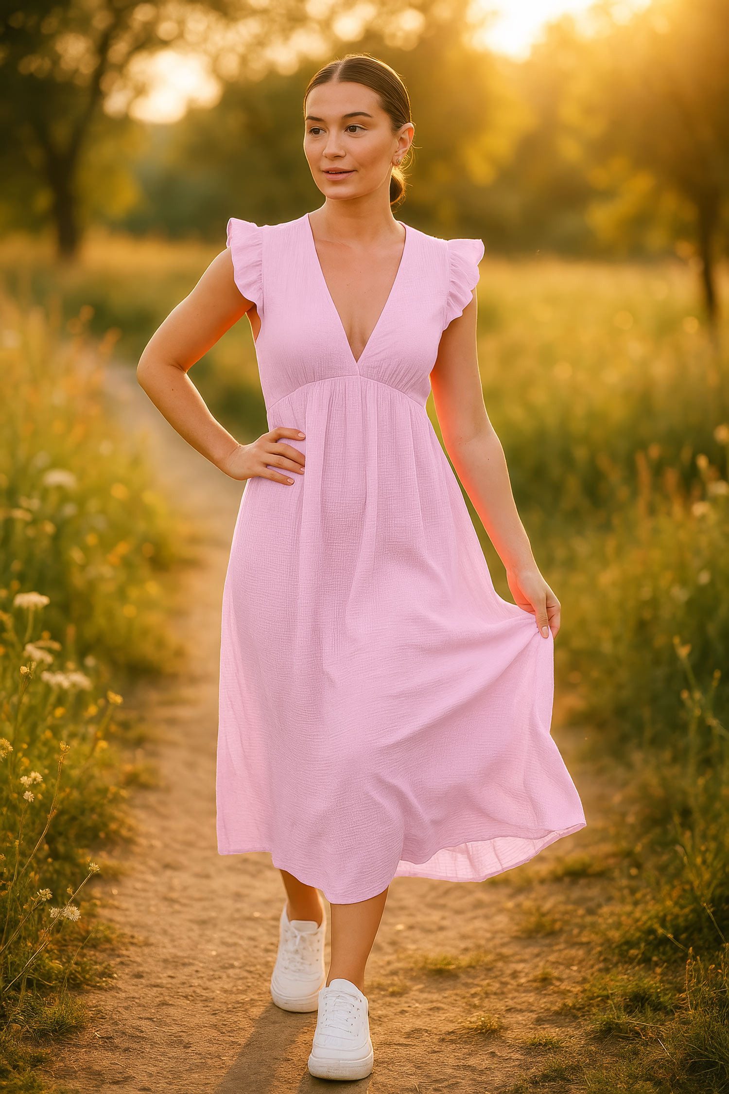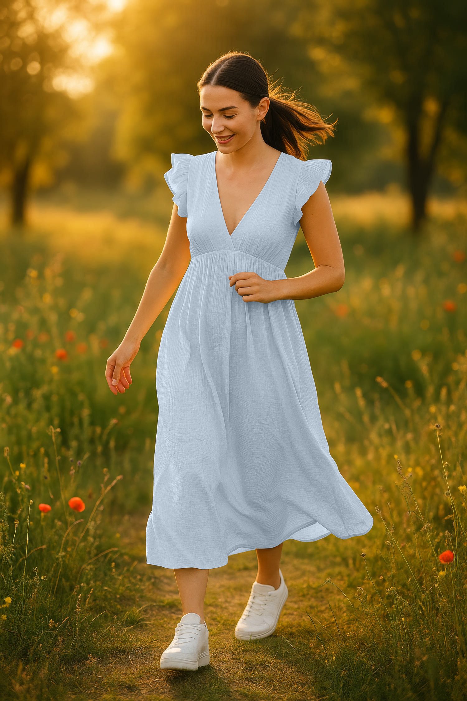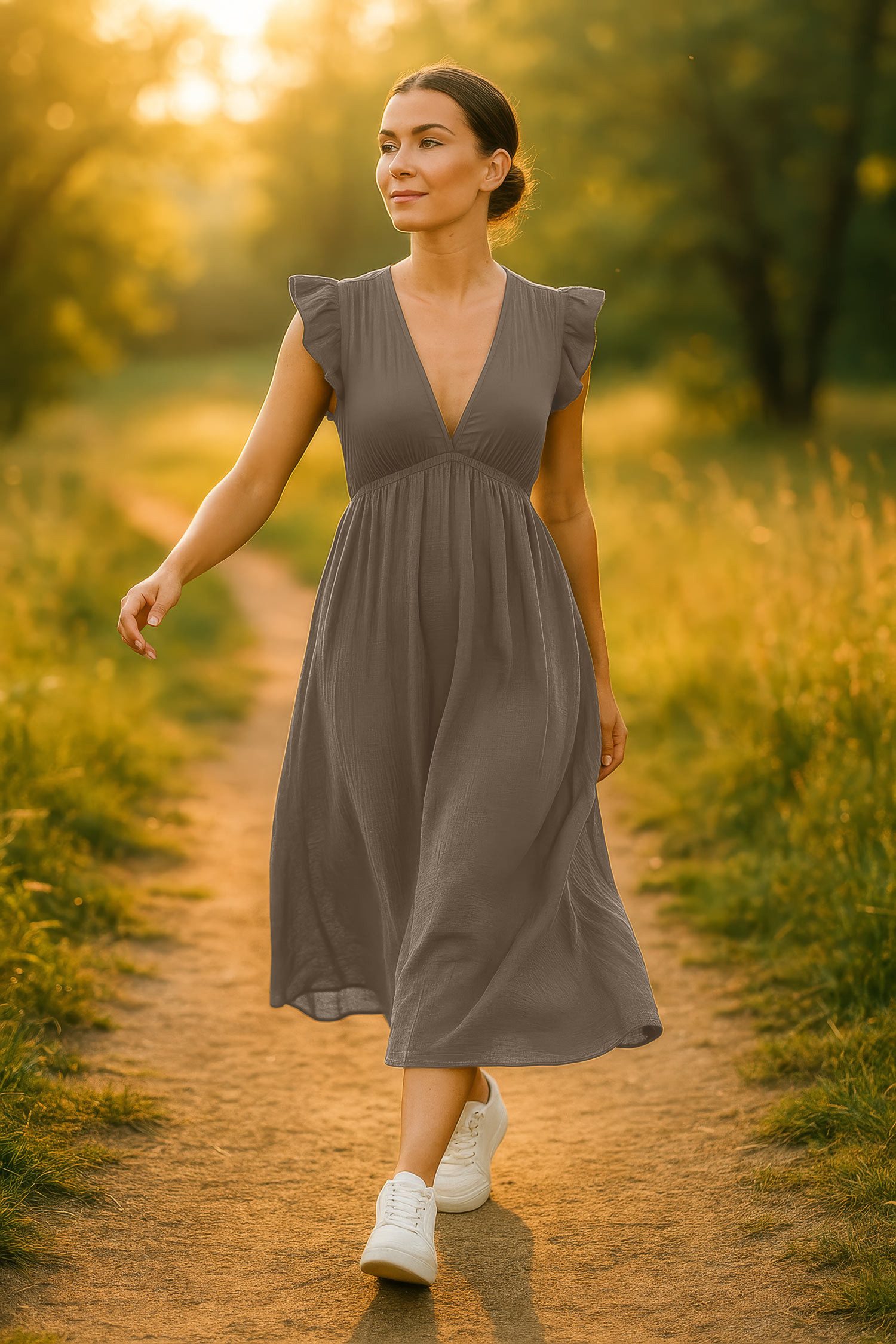 Besondere Merkmale | Tiefer V-Ausschnitt und raffinierte Rüschenärmel |