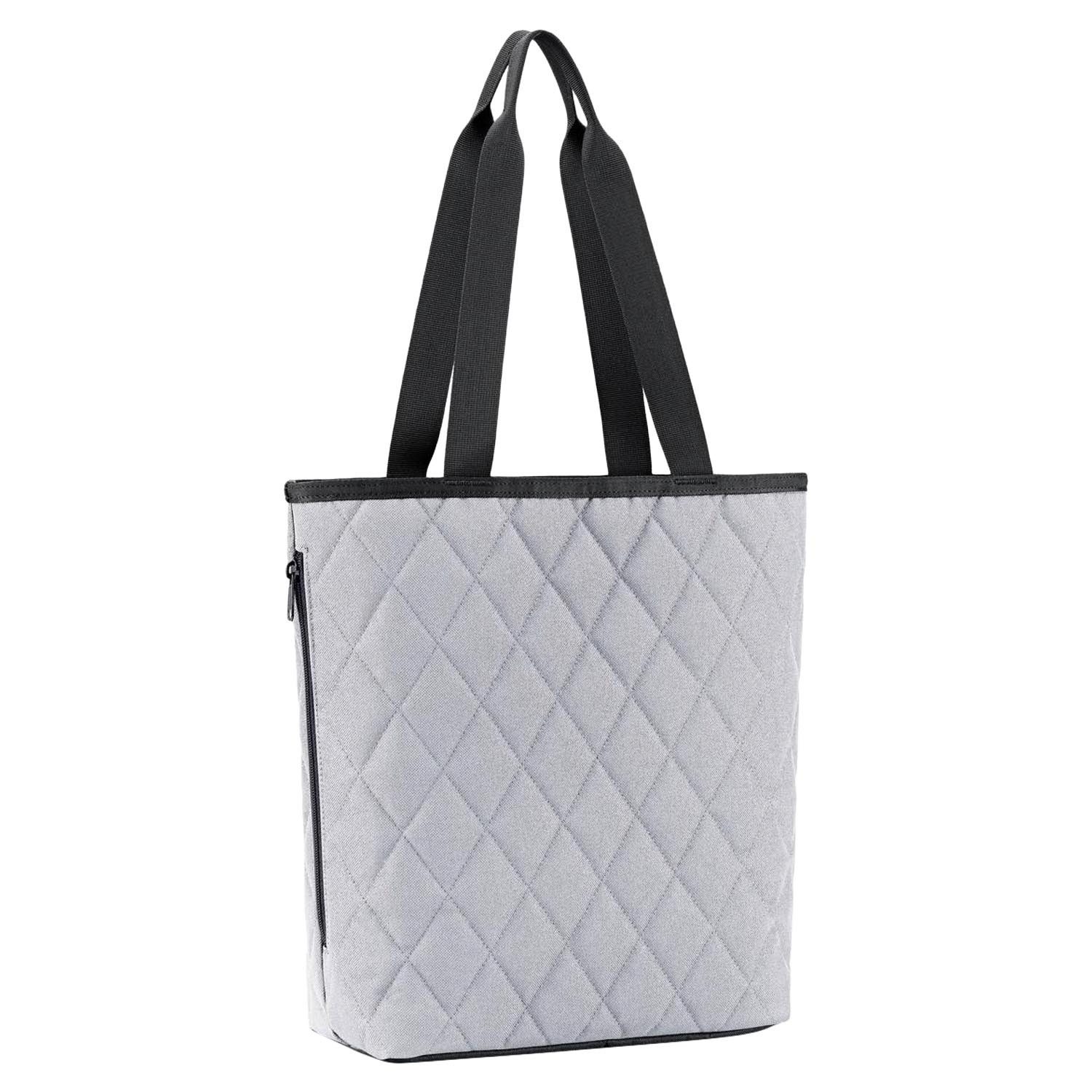 Die wasserabweisende Tragetasche SHOPPER M RHOMBUS LIGHT GREY von Reisenthel, in Hellgrau und Schwarz, bietet praktische Funktionen. Mit einem inneren Fach mit Reißverschluss und einer Öffnung mit Zugverschluss sowie zwei vernähten Tragegriffen ist sie gut organisiert. Ihr quadratischer Boden sorgt für festen Stand. Maße: 51 x 30,5 cm. Mit 15 Litern Fassungsvermögen ist sie ideal für den täglichen Gebrauch.