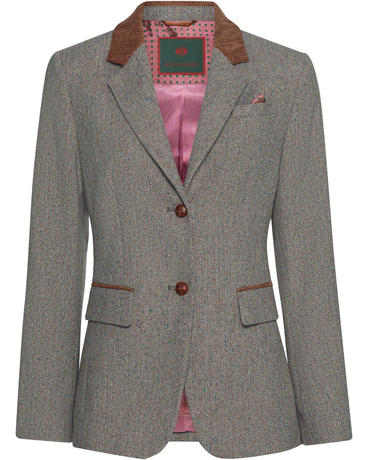 Edles Design mit einem Hauch British Style Der Damen Fischgrat-Blazer von Reitmayer kombiniert hochwertige Materialien mit einem markanten Design, das durch die stilvolle Fischgratstruktur hervorsticht und einen Hauch British Style vermittelt. Der Materialmix mit Wolle und Seide sorgt für ein luxuriöses Tragegefühl und eine ansprechende Optik. Dieser Blazer ist ideal für jene, die zeitlosen Stil und Qualität schätzen und ein besonderes Kleidungsstück suchen. Besondere Details für einen individuellen Look Der Blazer zeichnet sich durch seinen oberen Kragenbesatz und die Paspelierung aus Cord aus, die dem Design eine besondere Note verleihen. Lederflechtknöpfe an der 2-Knopf-Frontleiste und den Ärmelschlitzen setzen elegante Akzente und unterstreichen die Liebe zum Detail. Mit einer Brust-Leistentasche und zwei Frontpattentaschen bietet der Blazer praktische Funktionalität, ohne auf Stil zu verzichten. Diese sorgfältig ausgewählten Details machen ihn zu einem vielseitigen Begleiter für unterschiedliche Anlässe. Passform und Komfort vereint Der taillierte Schnitt des Blazers betont die Silhouette der Trägerin und sorgt für eine schmeichelnde Passform. Das komfortable Innenfutter gewährleistet ein angenehmes Tragegefühl, sodass der Blazer auch an langen Tagen eine ausgezeichnete Wahl ist. Reitmayer steht für Qualität und Stil und bietet Mode, die sowohl im beruflichen Umfeld als auch bei gesellschaftlichen Ereignissen überzeugt. Mit diesem Fischgrat-Blazer setzen Sie auf ein modisches Statement, das zeitlos und elegant ist, und zugleich einen subtilen britischen Charme ausstrahlt. Oberstoff: 32% Polyacryl, 30% Polyester, 29% Wolle, 6% Seide, 3% Sonstige Fasern; Futter: 50% Acetat, 50% Viskose; Sonstige Materialien: Kontrastmaterial, 87% Polyester, 10% Polyamid, 3% Elasthan
