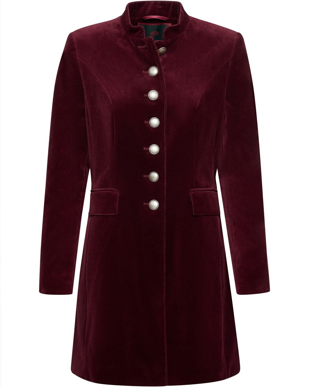 Der taillierte Damen Gehrock aus Baumwollsamt von REITMAYER vereint eleganten Landhausstil mit modernem Tragekomfort. Hergestellt aus hochwertigem Baumwollsamt, präsentiert sich der Gehrock in einer ansprechenden Optik, die sowohl für festliche Anlässe als auch für den Alltag geeignet ist. Der Stehkragen und die Pattentaschen verleihen dem Design eine klassische Note, während die Metallknöpfe einen Hauch von Raffinesse hinzufügen. Besondere Details wie der Ärmelschlitz mit vier Knöpfen und der rückwärtige Gehschlitz sorgen für eine bequeme Passform und maximale Bewegungsfreiheit. Das Innenfutter mit Hirschjacquard-Muster bietet nicht nur einen zusätzlichen Hauch von Eleganz, sondern sorgt auch für ein angenehmes Tragegefühl. Dieser Gehrock ist somit nicht nur ein modisches Statement, sondern auch ein praktisches Kleidungsstück, das Stil und Funktionalität vereint. Der REITMAYER Gehrock ist die ideale Wahl für stilbewusste Damen, die Wert auf Qualität und ansprechendes Design legen. Kombiniert mit einer eleganten Bluse oder einem klassischen Kleid, wird dieser Gehrock zum perfekten Begleiter für jede Gelegenheit und verleiht jedem Outfit einen Hauch von ländlichem Charme. Oberstoff: 100% Baumwolle; Futter: 50% Acetat, 50% Viskose