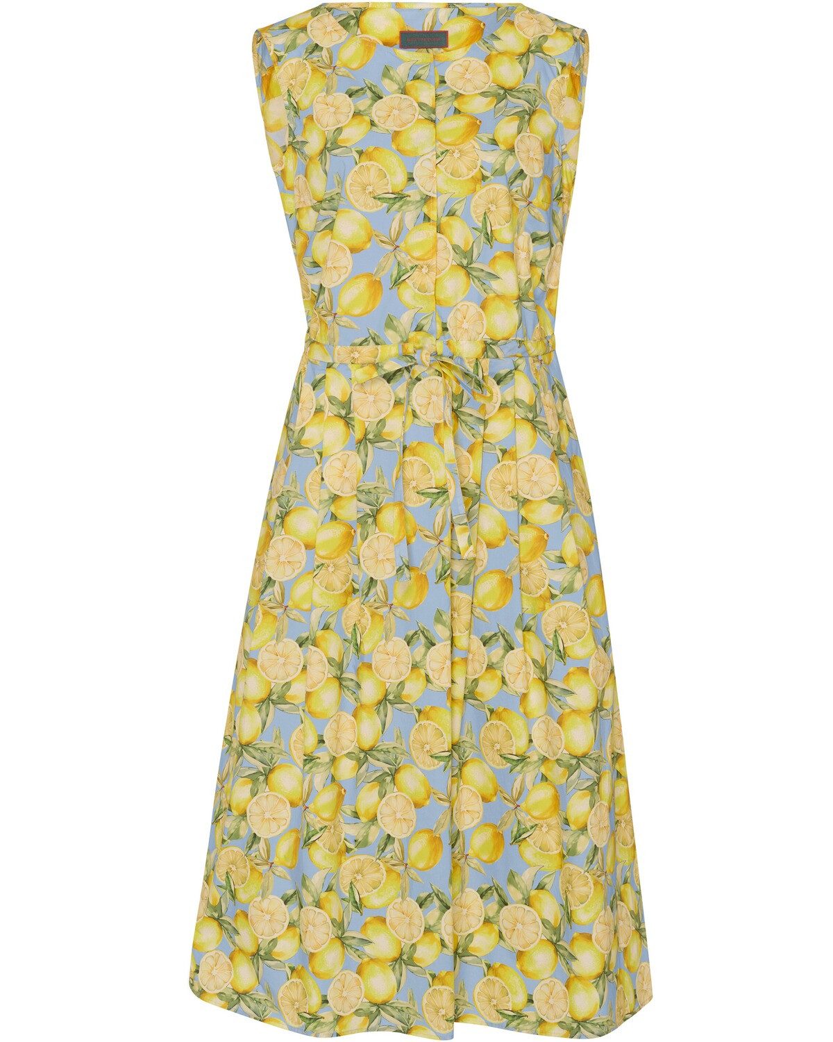 Das ärmellose Baumwollkleid von REITMAYER verkörpert den charmanten Landhausstil und bringt mit seinem erfrischenden Zitronen-Print einen Hauch von Sommer in jede Garderobe. Der lebendige Druck sorgt für einen fröhlichen Akzent, während die schlichte Eleganz des Kleides es zu einem vielseitigen Begleiter für verschiedene Anlässe macht. Die halbe Knopfleiste verleiht dem Design eine nostalgische Note, die perfekt mit dem ländlichen Flair harmoniert. Der schmale Bindegürtel in der Taille betont die feminine Silhouette und ermöglicht eine individuelle Anpassung des Kleides. Dadurch wird nicht nur eine schmeichelhafte Form geschaffen, sondern auch der Komfort maximiert. Die seitlichen Eingrifftaschen bieten praktische Funktionalität und unterstreichen den lässigen Charakter des Outfits, ideal für entspannte Tage im Freien oder gesellige Zusammenkünfte. Der Rock mit Falten sorgt für eine angenehme Bewegungsfreiheit und verleiht dem Kleid eine verspielte Eleganz. Dieses Kleid ist nicht nur ein modisches Statement, sondern auch ein zeitloses Stück, das sowohl in der Stadt als auch auf dem Land getragen werden kann. Die Kombination aus ansprechendem Design und praktischen Details macht es zu einem Must-Have für modebewusste Frauen, die den Landhausstil schätzen. Oberstoff: 100% Baumwolle