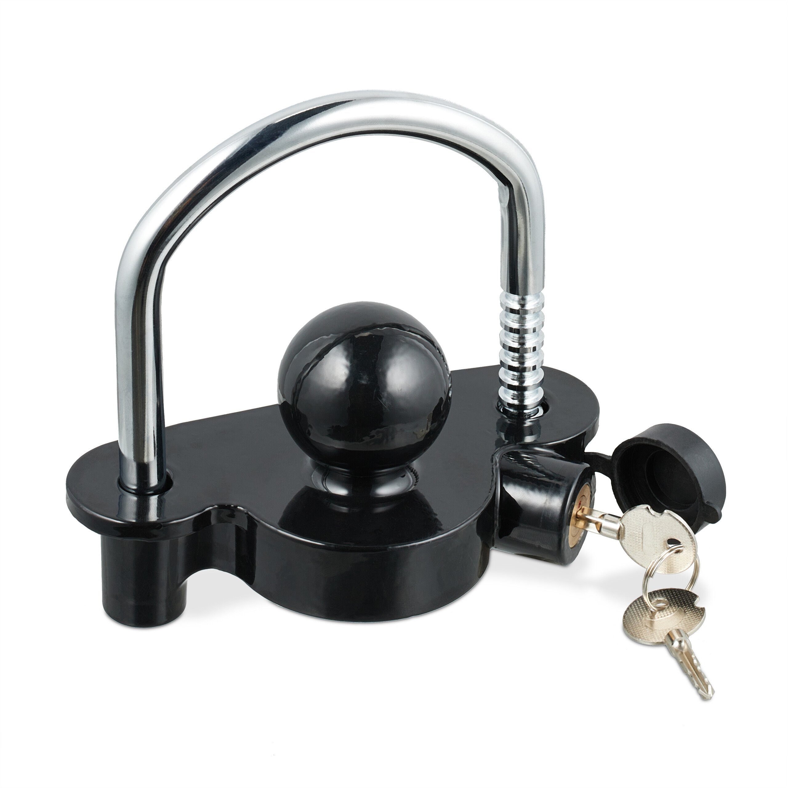 Mit diesem praktischen Anhängerschloss schützt Du Deinen PKW-Anhänger, Wohnwagen und Co. effektiv vor Diebstahl. Das massive, schwarze Deichselschloss eignet sich für alle gängigen Anhängerkupplungen mit 50 mm Kupplungsklaue und ist mit wenigen Handgriffen montiert. Dazu einfach den Kugelkopf einkoppeln und mit dem Stahlbügel und Kreuzschloss der Anhängerdiebstahlsicherung alles sicher verriegeln – Inkl. Ersatzschlüssel. So sicherst Du Dein Eigentum schnell und zuverlässig vor Unbefugten.