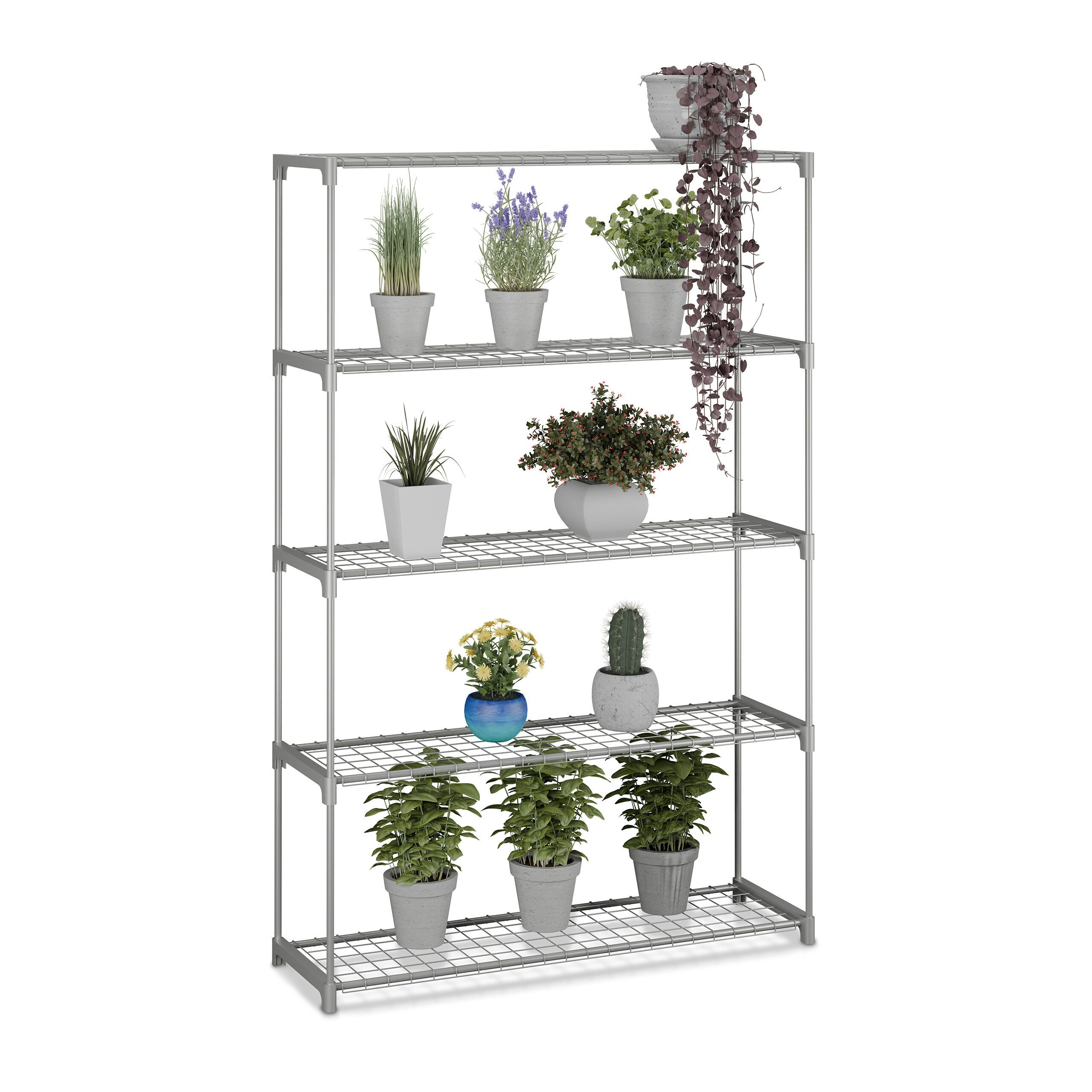 Graues Pflanzenregal aus Metall - Zur Aufbewahrung von Pflanzen- und Kräutertöpfen - Pflanzregal mit viel Stauraum auf 5 breiten Gitterablagen - Im Innenbereich für Wohnzimmer, Küche oder Wintergarten - Ideal auch als Gewächshaus-Regal oder Balkonregal - Schneller und einfacher Aufbau dank Stecksystem