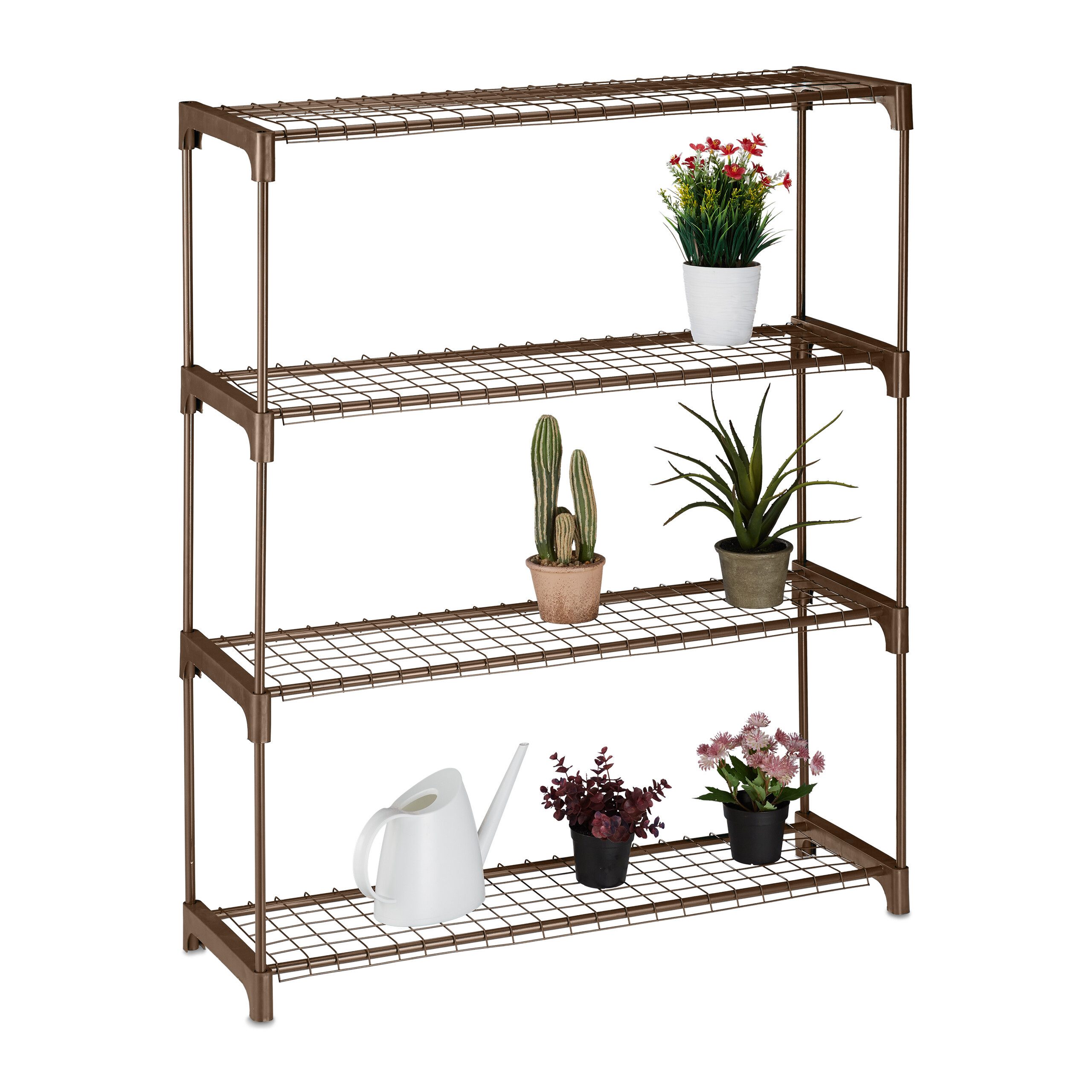 Braunes Standregal für Pflanzen - Zur Aufbewahrung von Pflanzen-, Blumen- oder Kräutertöpfen - Das Regal bietet viel Stauraum auf 4 breiten Gitterablagen - Im Innenbereich für Wohnzimmer, Küche oder Wintergarten - Ideal auch als Anzuchtregal für Deine Setzlinge - Schneller und einfacher Aufbau dank Stecksystem - Bei Bedarf lässt sich Pflanzregal erweitern
