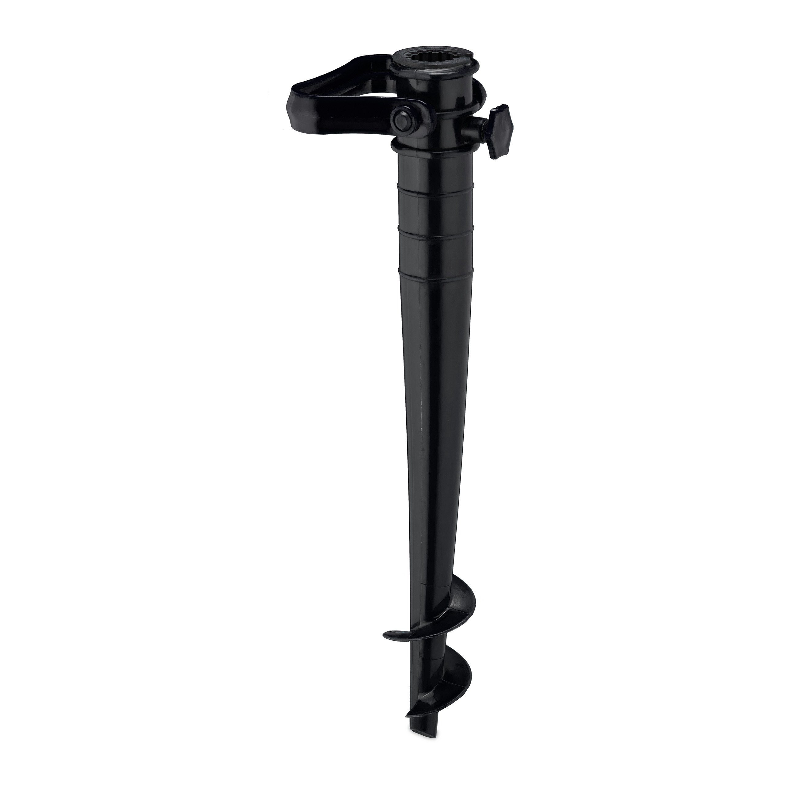 Schirmhalter zum Eindrehen - Sonnenschirm bombenfest aufstellen - Für Schirmstöcke mit verschiedenen Durchmessern - Geeignet für weiche Gras- oder Sandböden - Mit klappbarem Griff in den Boden schrauben - Ideal für unterwegs - Geringes Gewicht