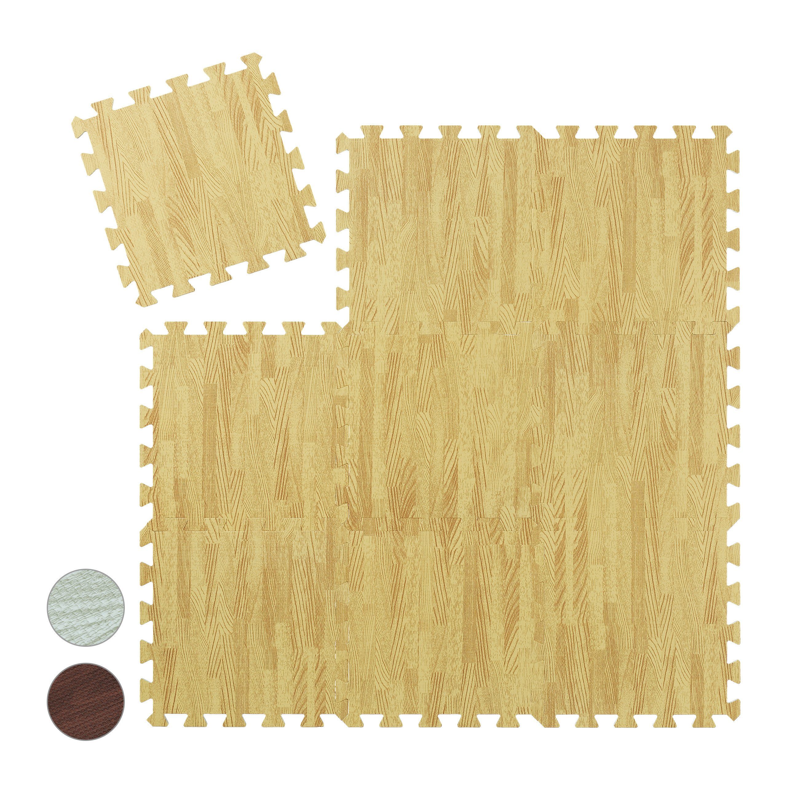 Mit diesen Trainingsmatten minimieren Sie Lärm beim Heimtraining und schützen gleichzeitig Ihren Boden vor Kratzern und Dellen. Das 9-teilige Puzzlematten Set kann nach Belieben zusammengesetzt werden und ist die perfekte Unterlage für Sportgeräte oder Gewichte. Die Unterlegmatten sind auch für Yoga-, Gymnastik- und andere Sportübungen einsetzbar. Nach Gebrauch lassen sich die Fitnessmatten platzsparend verstauen. Dank der Holzoptik mit schöner Maserung sind die Matten zudem sehr dekorativ.