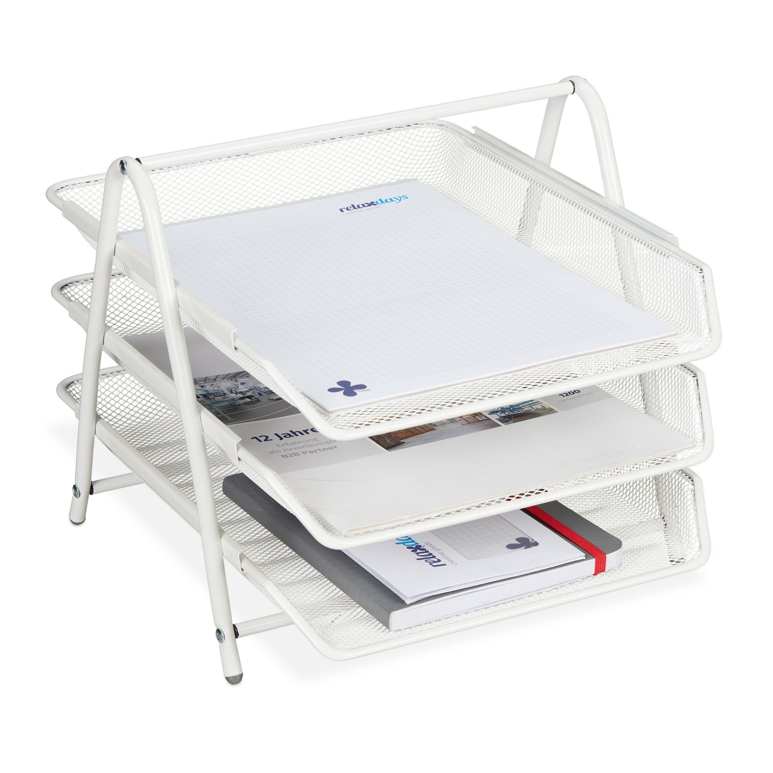 In der praktischen Papierablage stapeln Sie Dokumente, Briefe und Rechnungen platzsparend übereinander. Das Ablagesystem verfügt über drei Fächer für Unterlagen im DIN A4 Format. Die tiefen Fächer bestehen aus einem Drahtgeflecht und passen mit ihrem schlichten Design auf jeden Schreibtisch. Die Ablagefächer sind über eine Schiene komplett ausziehbar und ermöglichen so einen schnellen Zugriff auf Ihre Unterlagen. Mit der Aktenablage bringen Sie im Büro oder Zuhause Ordnung in Ihre Dokumente.