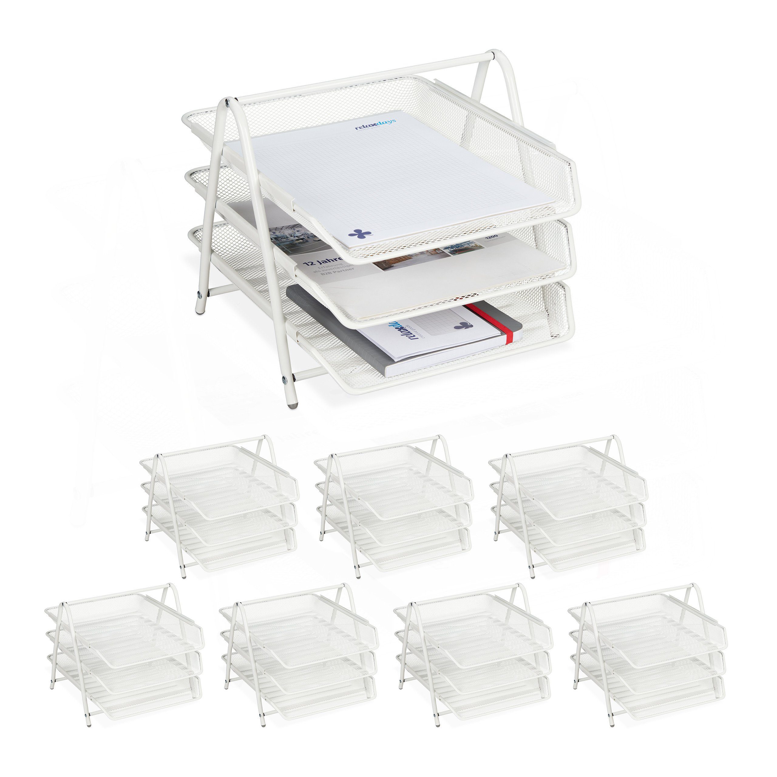 In der praktischen Papierablage stapeln Sie Dokumente, Briefe und Rechnungen platzsparend übereinander. Das Ablagesystem verfügt über drei Fächer für Unterlagen im DIN A4 Format. Die tiefen Fächer bestehen aus einem Drahtgeflecht und passen mit ihrem schlichten Design auf jeden Schreibtisch. Die Ablagefächer sind über eine Schiene komplett ausziehbar und ermöglichen so einen schnellen Zugriff auf Ihre Unterlagen. Mit der Aktenablage bringen Sie im Büro oder Zuhause Ordnung in Ihre Dokumente.