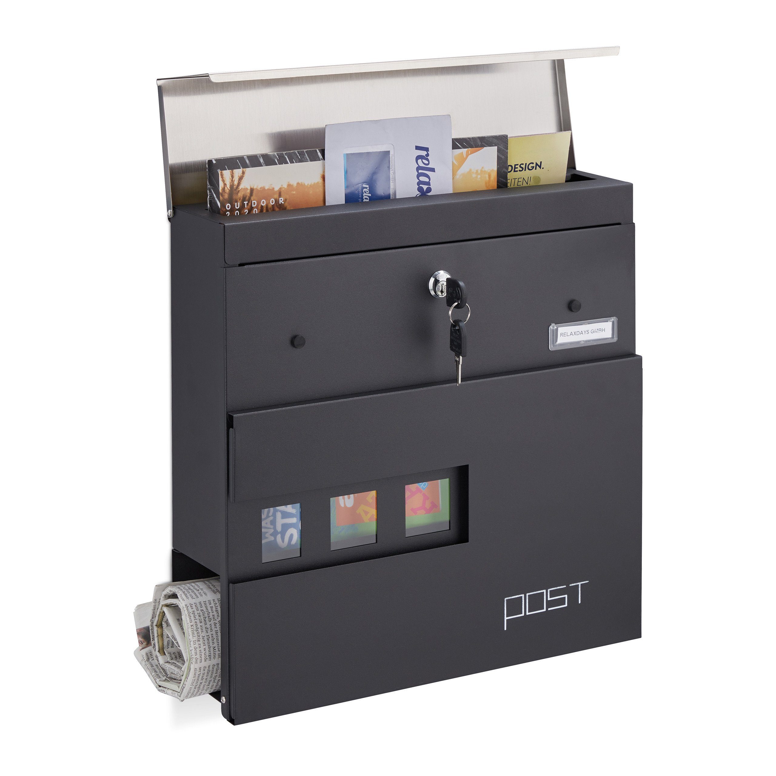 Dieser moderne Briefkasten aus Stahl ist sicher auch an Deiner Hauswand ein Hingucker. Der Wandbriefkasten ist abschließbar und wird mit 2 Schlüsseln geliefert. Das geräumige Innenfach bietet viel Platz für Deine Postsendungen, welche durch den breiten Briefschlitz einfach einzuwerfen sind. Praktisch ist das offene Zeitungsfach der Postbox, in dem auch dicke Wochenzeitungen gerollt ihren Platz finden. Die Wandmontage ist einfach und die 4 Bohrungen an der Rückseite sorgen für sicheren Halt.