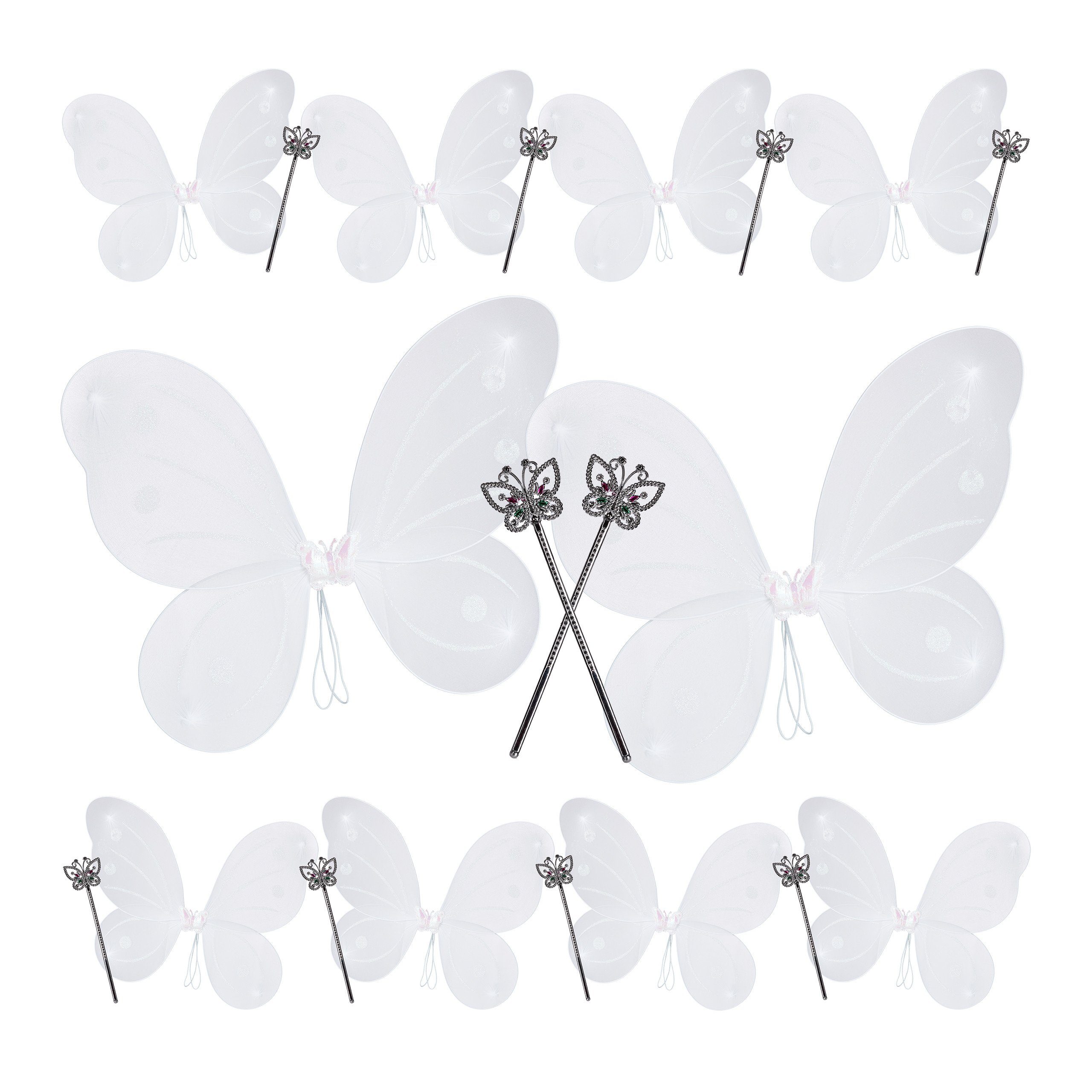Feenset: 10 x glitzernde Feenflügel mit silbernem Zauberstab - In der bezaubernden weißen Варианты