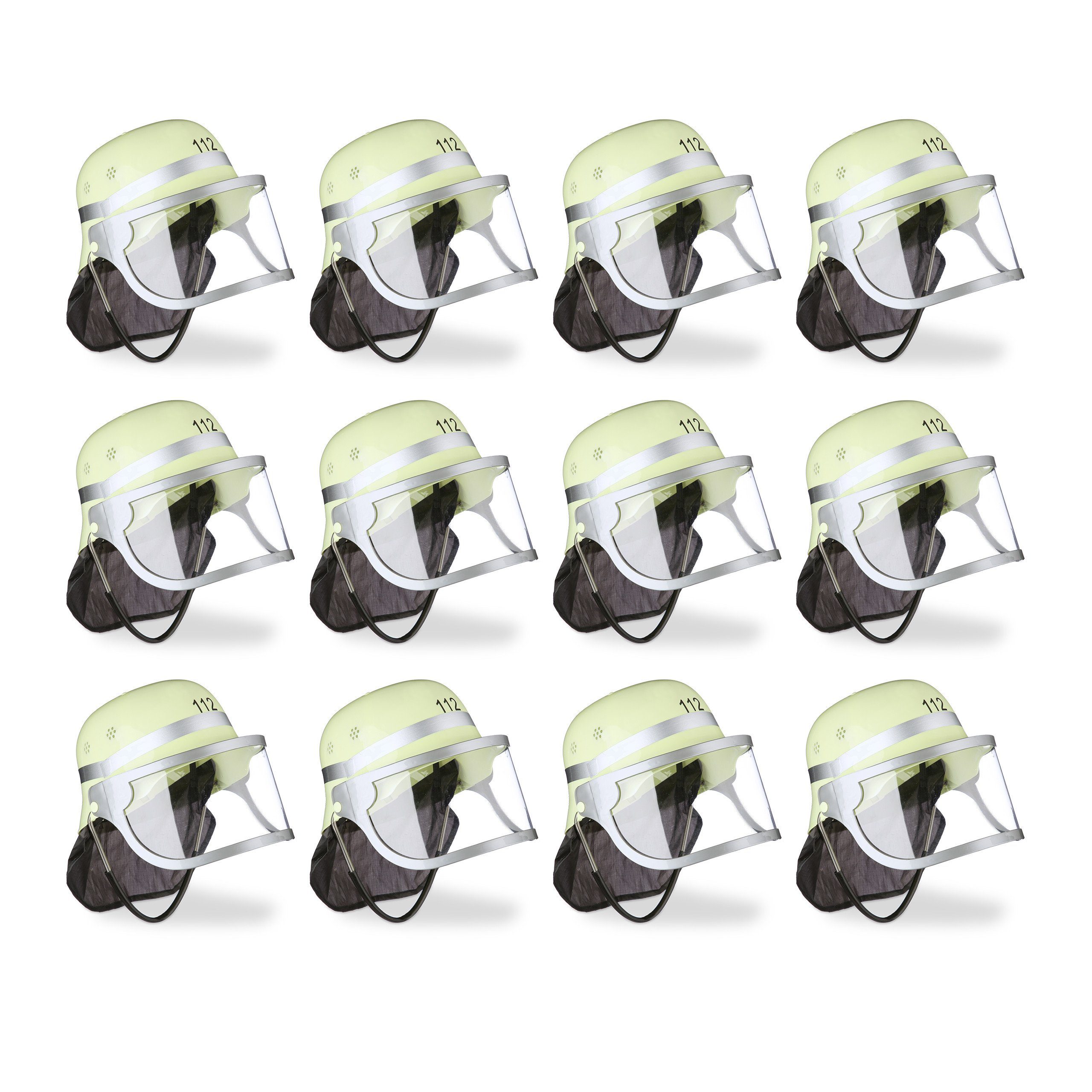 Wenn Ihr kleiner Liebling von einer Karriere als Feuerwehrmann oder - frau träumt, sind diese gelben Feuerwehrhelme genau richtig. Das Feuerwehr-Zubehör wartet mit einem klappbaren Visier und einem schwarzen Nackentuch auf. Die vielen Luftlöcher sorgen dafür, dass Ihrem Kind selbst im hitzigsten Einsatz unter dem Helm nicht zu heiß wird. Die Размер der Einsatzhelme lässt sich mithilfe der integrierten Helmvorrichtung bequem anpassen.
