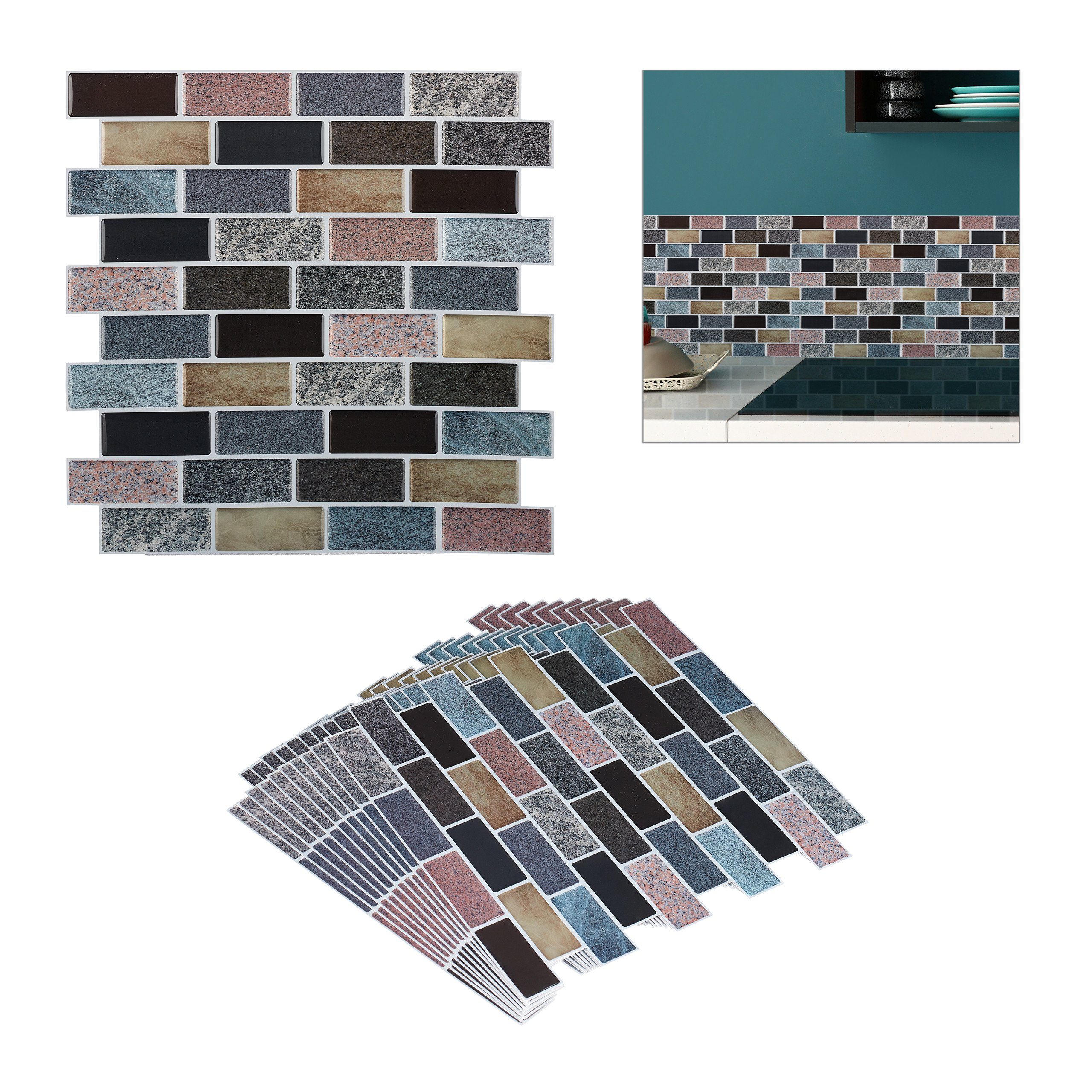 Kunststoffpaneele im 10er Set - Für kahle Wände in Bad und Küche - Haftet an glatten Oberflächen, wie Glas, Acryl, Keramik uvm. - Dekoratives Design in Steinoptik - Realistische, dreidimensionale Oberfläche - Selbstklebende und wasserfeste Fliesenfolie - Auch für Wohnzimmer, Waschraum etc.