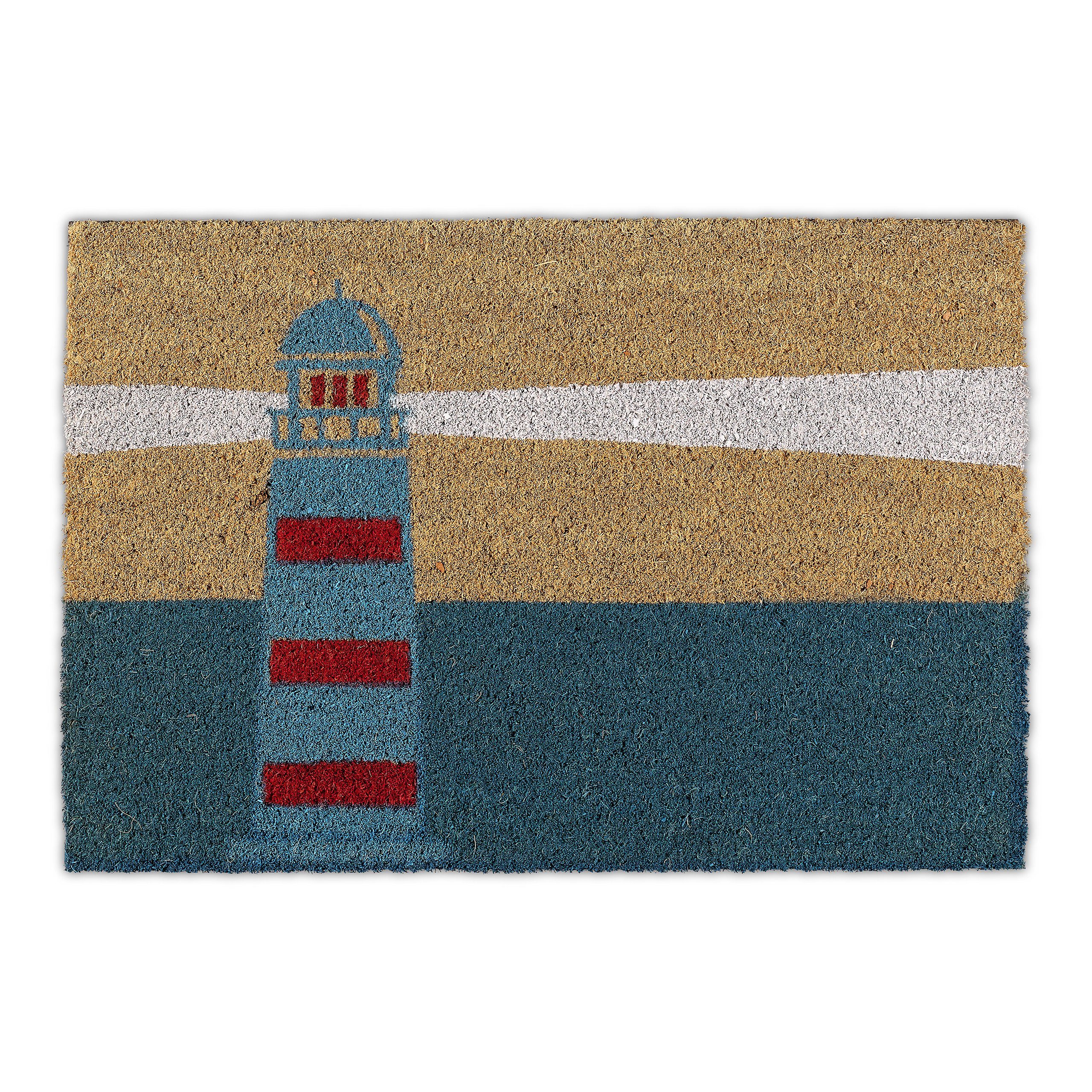 Mit dieser originellen Fußmatte im maritimen Look werden Ihre Gäste in den heimischen Hafen Ihrer Wohnung gelotst. Doch der Türvorleger punktet nicht nur mit seinem dekorativen Leuchtturm Motiv. Durch die natürlichen Kokosfasern ist die Türmatte robust und langlebig. Dank wetterfester Eigenschaften des umweltfreundlichen Rohstoffs kann der Fußabstreifer innen und außen genutzt werden. Die Unterseite besteht aus rutschfestem PVC, sodass der Schuhabtreter an seinem angestammten Platz bleibt.