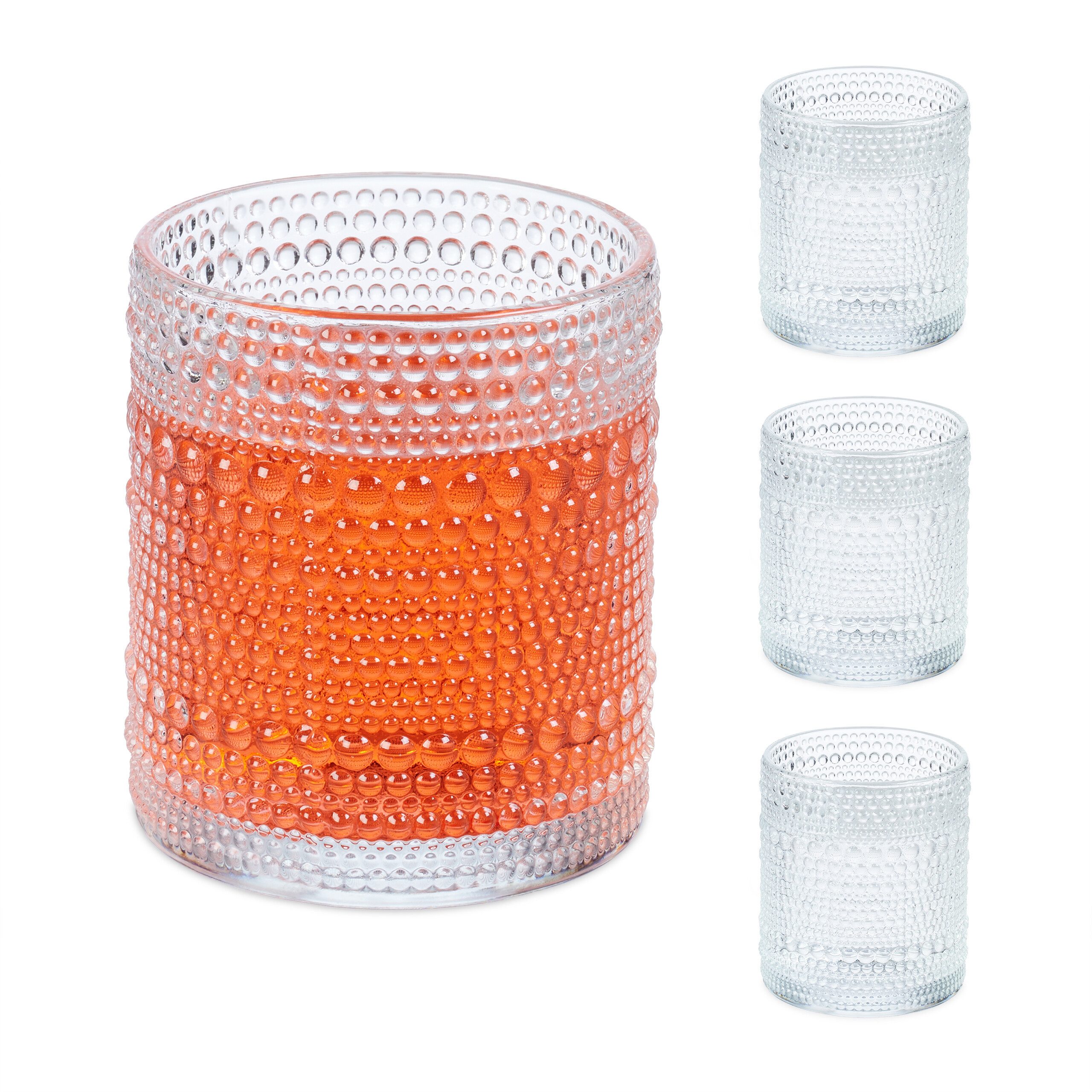 Wassergläser für jeden Haushalt - Trinkgläser im 4er Set sind aus Glas gefertigt - Transparentes Design mit Tröpfchen-Muster - Highlight bei Dinnerpartys und Cocktailabenden - Ideales Geschenk für die erste, eigene Wohnung - Einfache Reinigung in der Spülmaschine