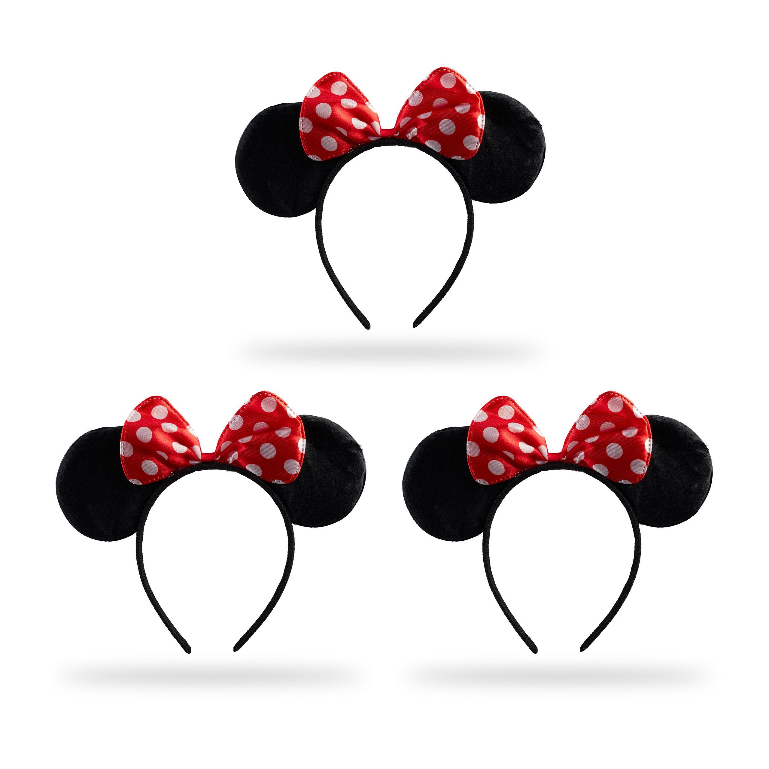 Haarreif Maus im Detail - Maße gesamt H x B x T: ca. 19,5 x 22 x 1,5 cm - Wiegt ca. 50 g - Einheitsgröße - Material: Polyester - Farbe: Schwarz, Rot, Weiß - Im 3er Set