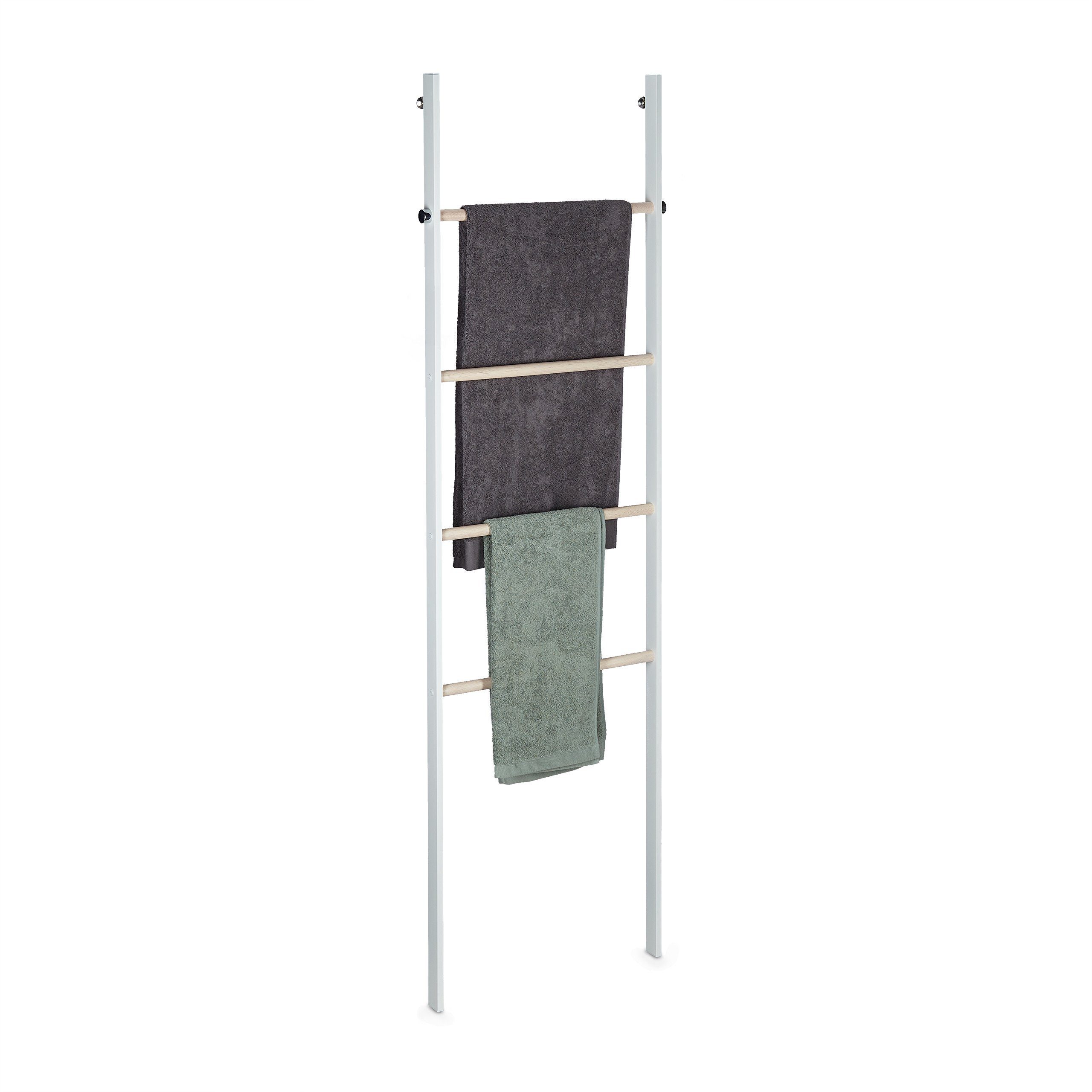 Mit dieser praktischen Handtuchleiter kannst Du Deine Hand- und Duschtücher platzsparend trocknen. Platziere die 4-sprossige Wäscheleiter einfach an einer Wand Deiner Wahl - ganz ohne lästiges Bohren. Der weiße Badetuchhalter ist schnell aufgebaut und flexibel einsetzbar. Lege gerne auch Kleidungsstücke auf der vielseitigen Wäscheleiter ab oder nutze sie als coole Dekoleiter. Mit seinem modernen Design im Materialmix aus Metall und Holz ist der Standhandtuchhalter überall ein echter Blickfang.