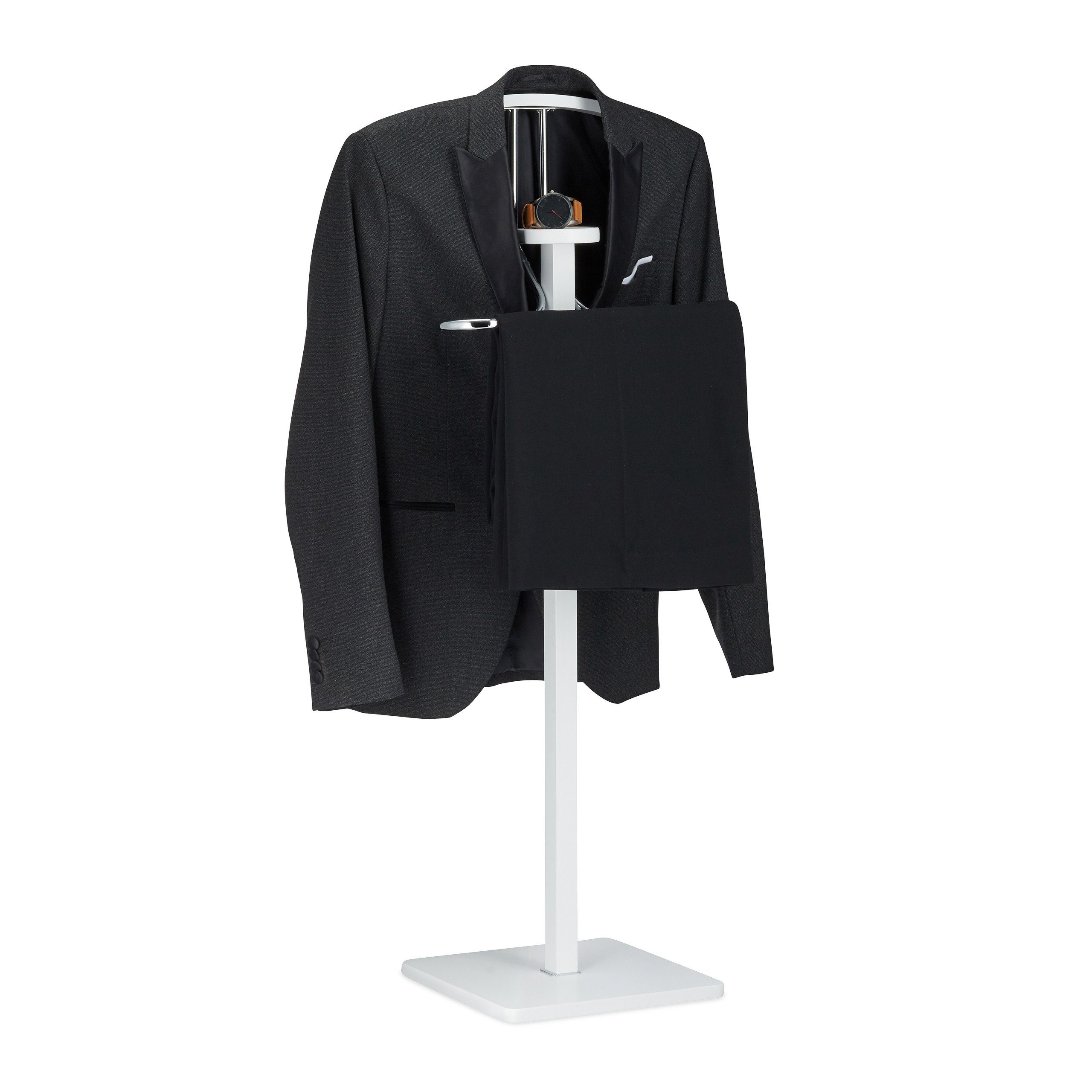Herrendiener mit Ablage - Mit Kleiderbügel und Hosenstange - Runde Ablage für Ketten, Ringe uvm. - Modernes Design mit gebogenen Formen - Schafft Ordnung in Ankleidezimmer, Flur uvm. - Für eine faltenfreie Aufbewahrung