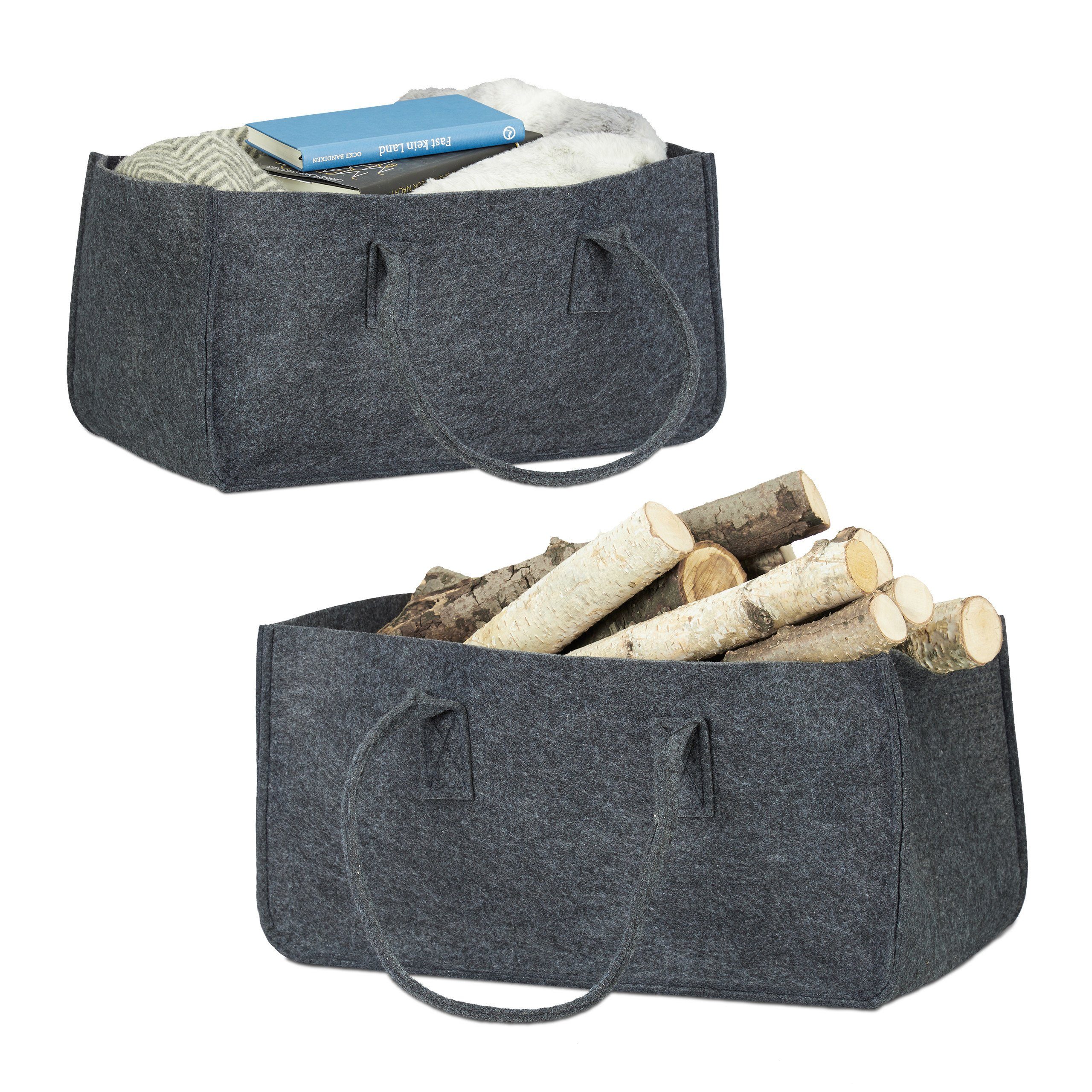 2er Set Filzkörbe: Ideal zur Aufbewahrung von Feuerholz für den heimischen Kamin - Maße H x B x T: ca. 25 x 25 x 50 cm