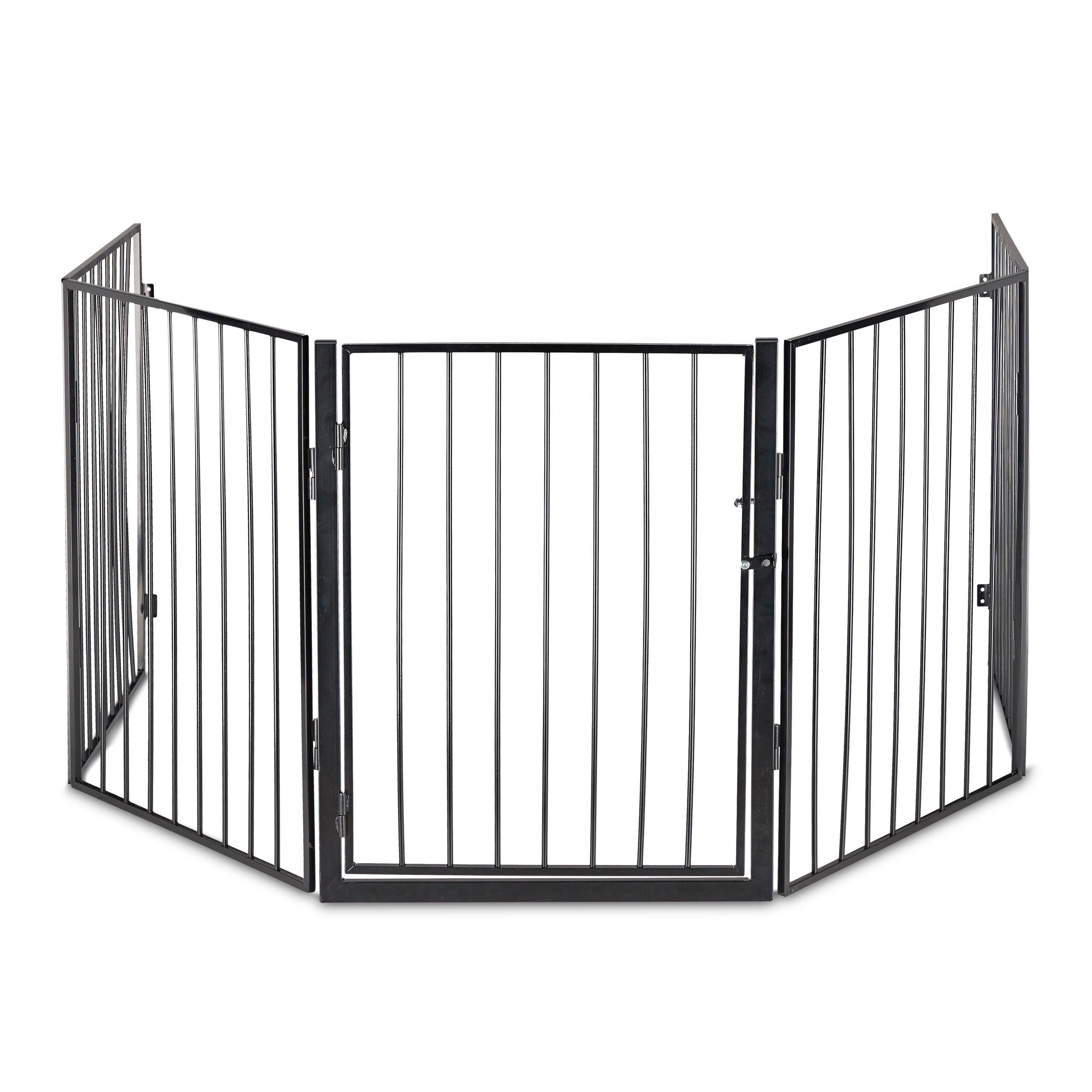 Gitter für Kaminofen - Schutzgitter hält Kinder und Haustiere vom Feuer fern - Türschutzgitter mit 2-facher Verriegelung - Konfigurationsgitter mit frei wählbarer Form - Wandmontage an 4 Stellen (Schrauben und Dübel inkl.) - Bei Nichtgebrauch platzsparend faltbar - Vielseitig einsetzbar als Treppengitter, Kindergitter, Hundeabsperrgitter