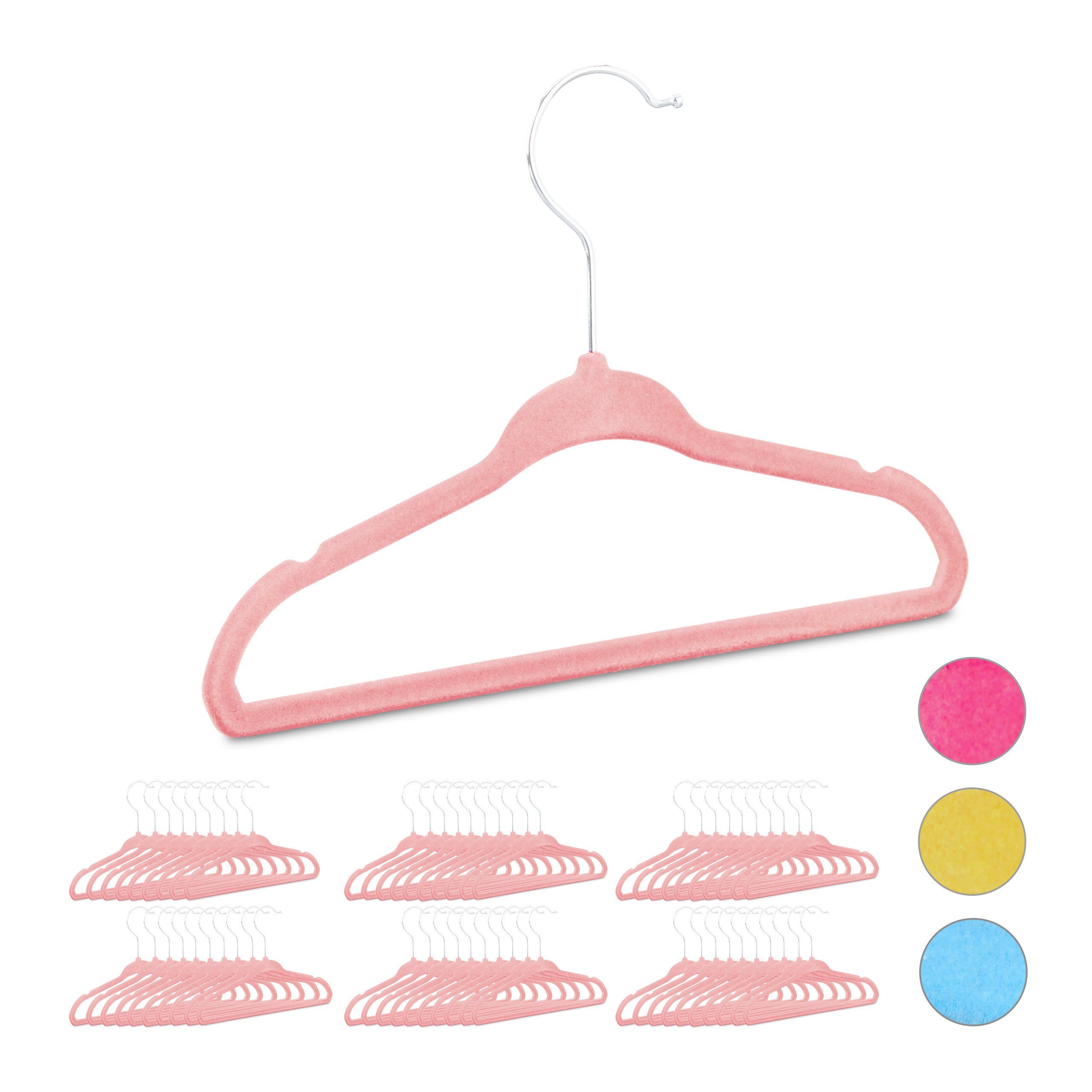 Mit diesem 60er Set Kleiderbügel können Sie (fast) alle Sachen Ihres Kindes aufhängen. Die Kunststoffbügel haben genau die richtige Размер und fühlen sich dank des Samtbezuges angenehm weich an. Der Bezug und die beiden Kerben verhindern, dass Hosen, Jacken und andere Kinderbekleidung vom Bügel rutscht. Falls die Kinderkleiderbügel nicht mehr benötigt werden, stapeln Sie sie einfach platzsparend. Die 360 Grad drehbaren Haken erlauben eine flexible Nutzung.