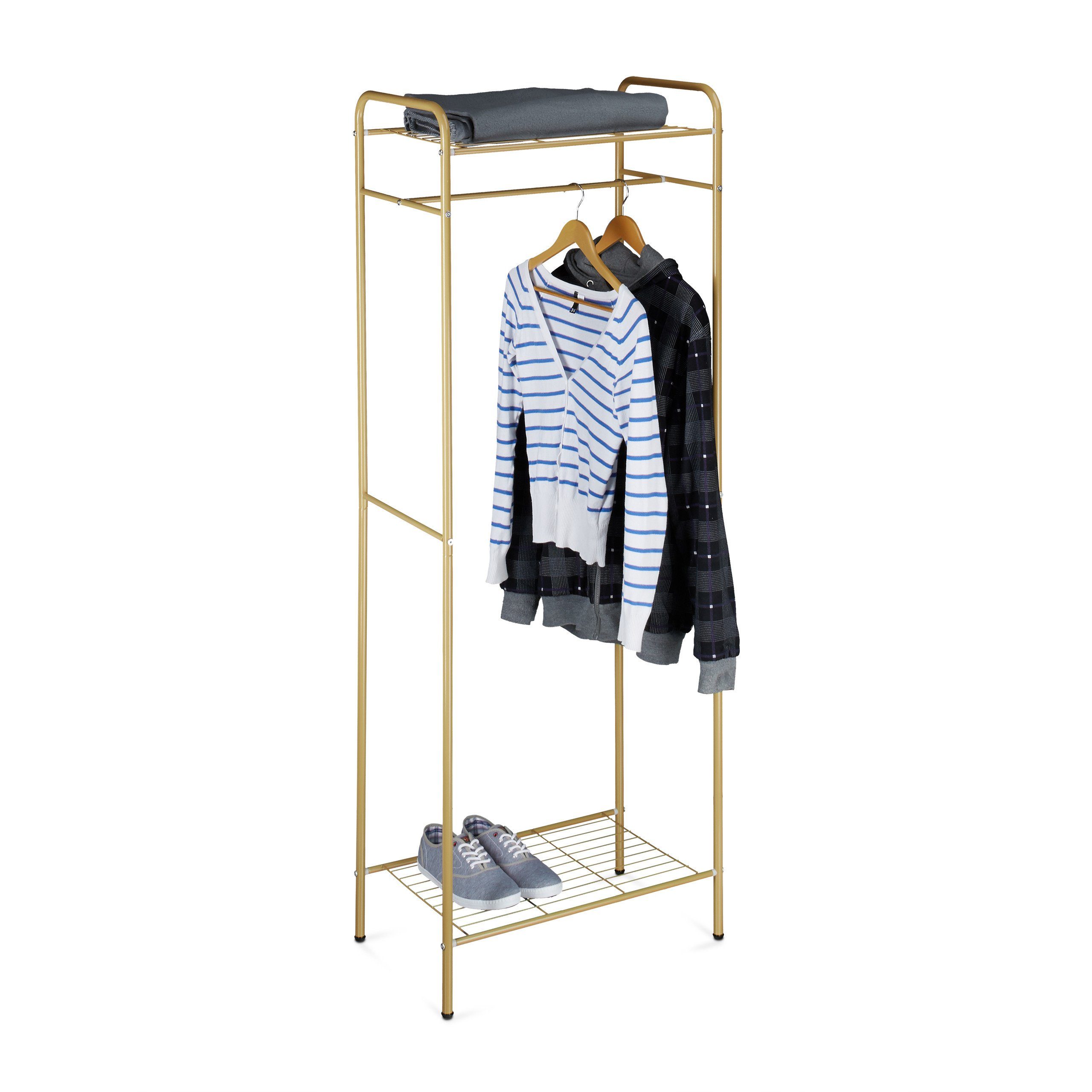 Schaffen Sie Stauraum in Ihrem Flur. Der Kleiderständer SANDRA verfügt über 2 Ablagen und eine Kleiderstange. Letztere ist ca. 60 cm breit und trägt Jacken, Mäntel oder Hemden. Nutzen Sie das obere Fach als Hutablage und für Schals. Die untere Ablage eignet sich als Schuhregal. Darin finden auch Stiefel und andere hohe Schuhe Platz.