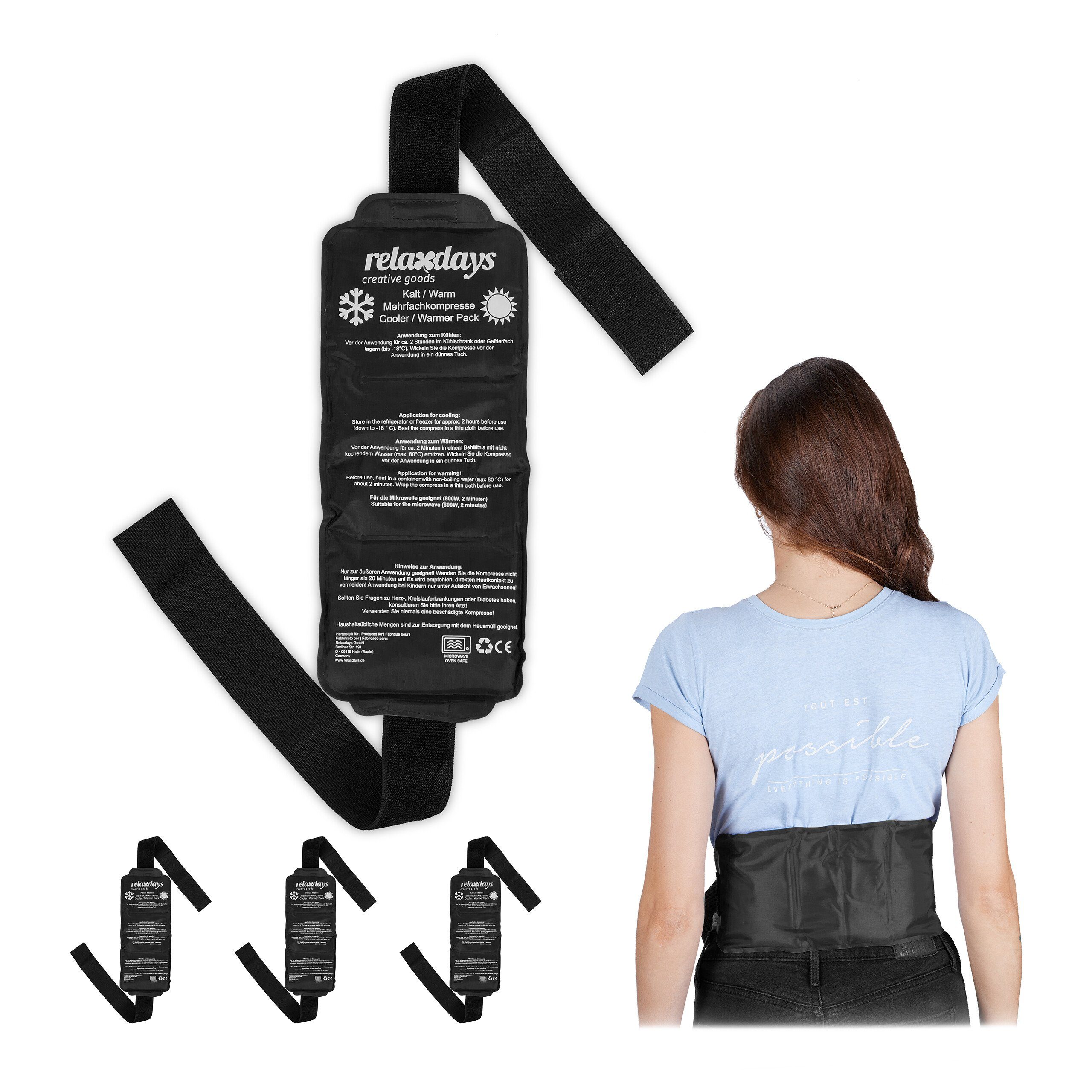 Mit diesen Mehrfachkompressen kannst Du effektiv zur Schmerzlinderung im Rücken- und Schulterbereich beitragen. Je nach Bedarf können die Gelpacks im Gefrierschrank gekühlt oder in Mikrowelle oder Wasserbad erwärmt werden. Als Kühlbandage helfen sie bei Verstauchungen, Prellungen oder nach Rücken- und Schulter-OPs. Eine Wärmetherapie mit den Wärme-Gelkissen schafft unter anderem bei Regel-, Bauch- und Rückenschmerzen Abhilfe. Dank des Klettverschlusses lassen sich die Kühlkissen sicher fixieren.