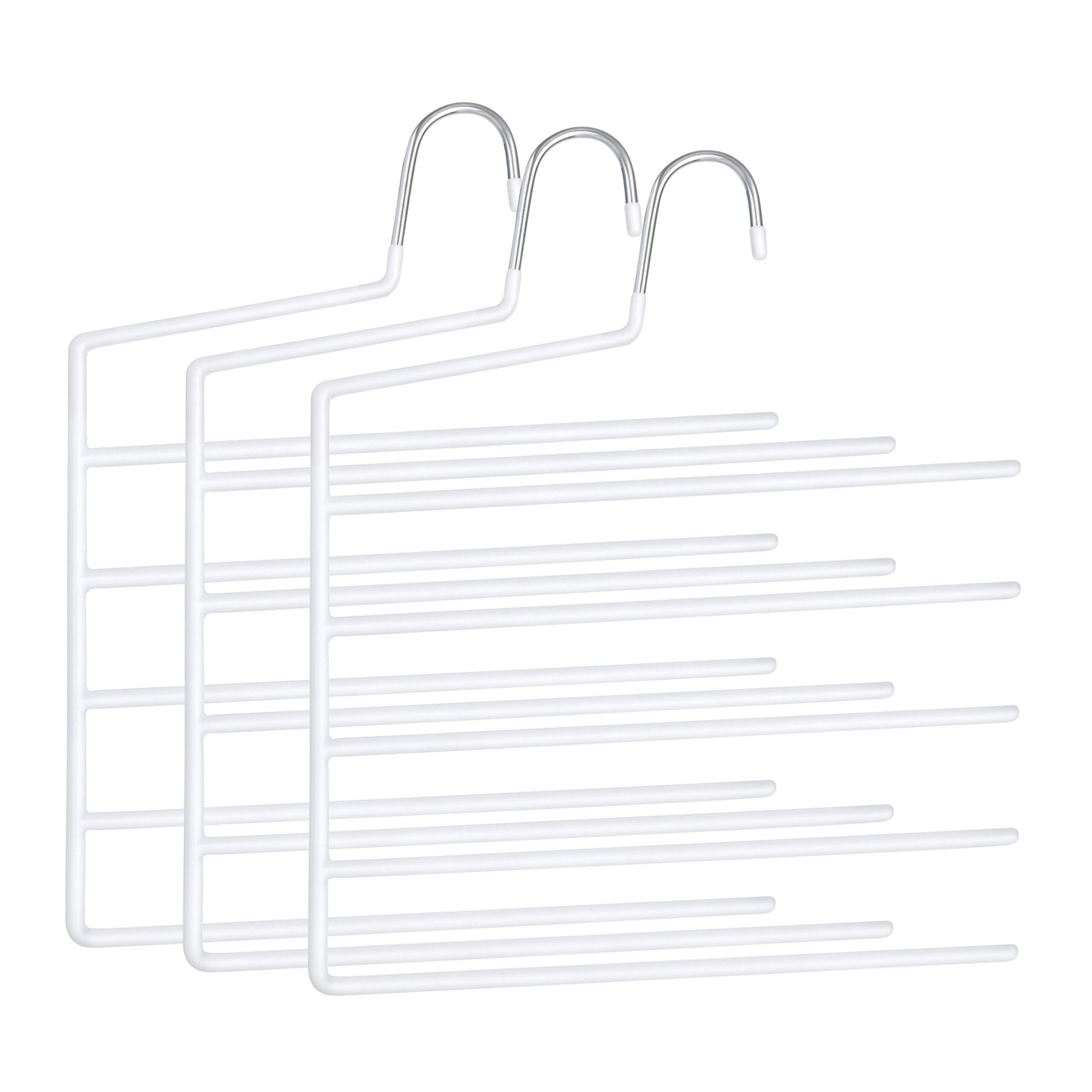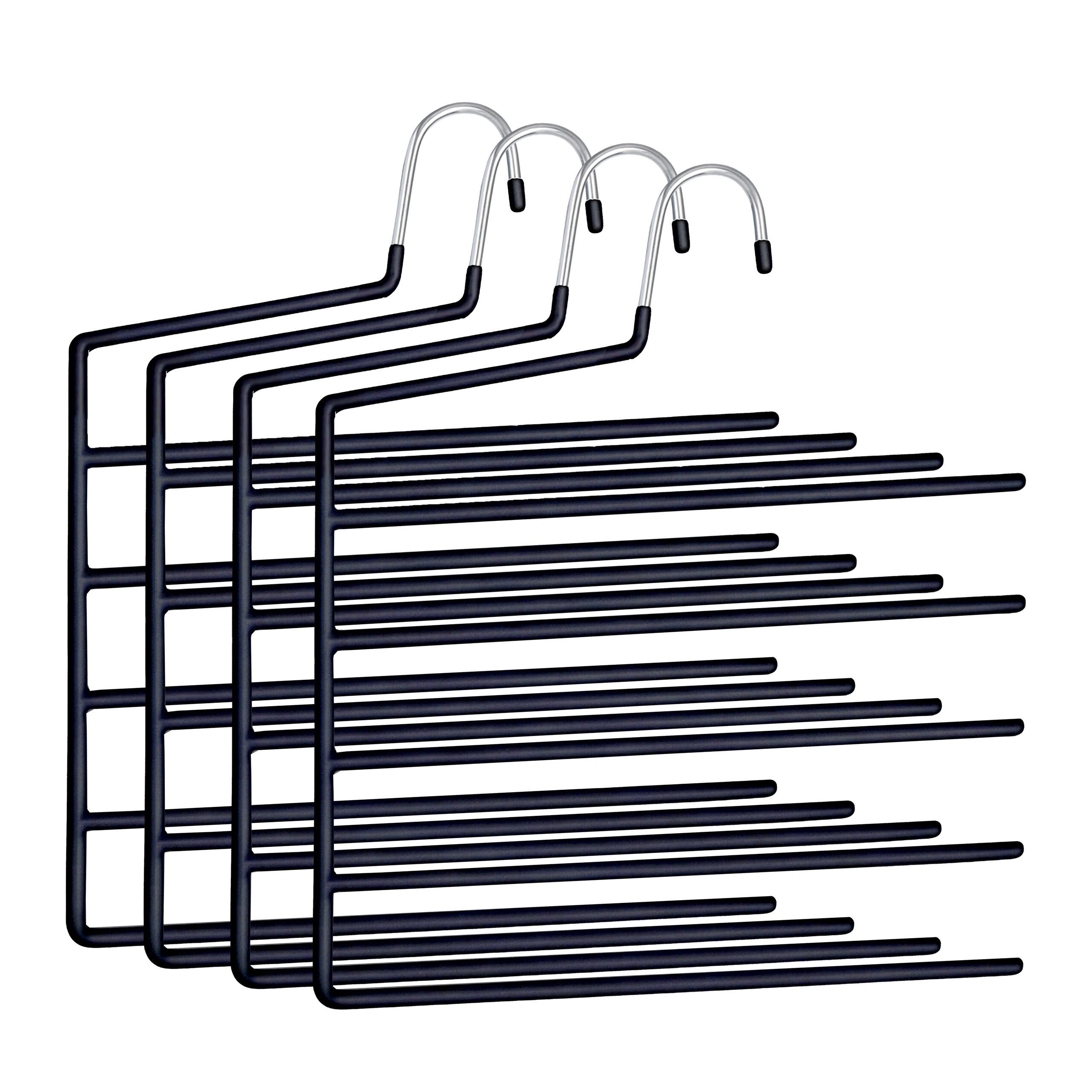 Platzsparende Hosenbügel - Je 5 Stangen zum faltenfreien Aufhängen von Hosen und Schals - Mehrere Kleidungsstücke platzsparend untereinander hängen - Gummierte Beschichtung bewahrt Kleidung vor Herunterrutschen - Vorhandenen Stauraum im Kleiderschrank optimal ausnutzen - Offenes Ende zum einfachen Aufhängen oder Abnehmen der Kleidung