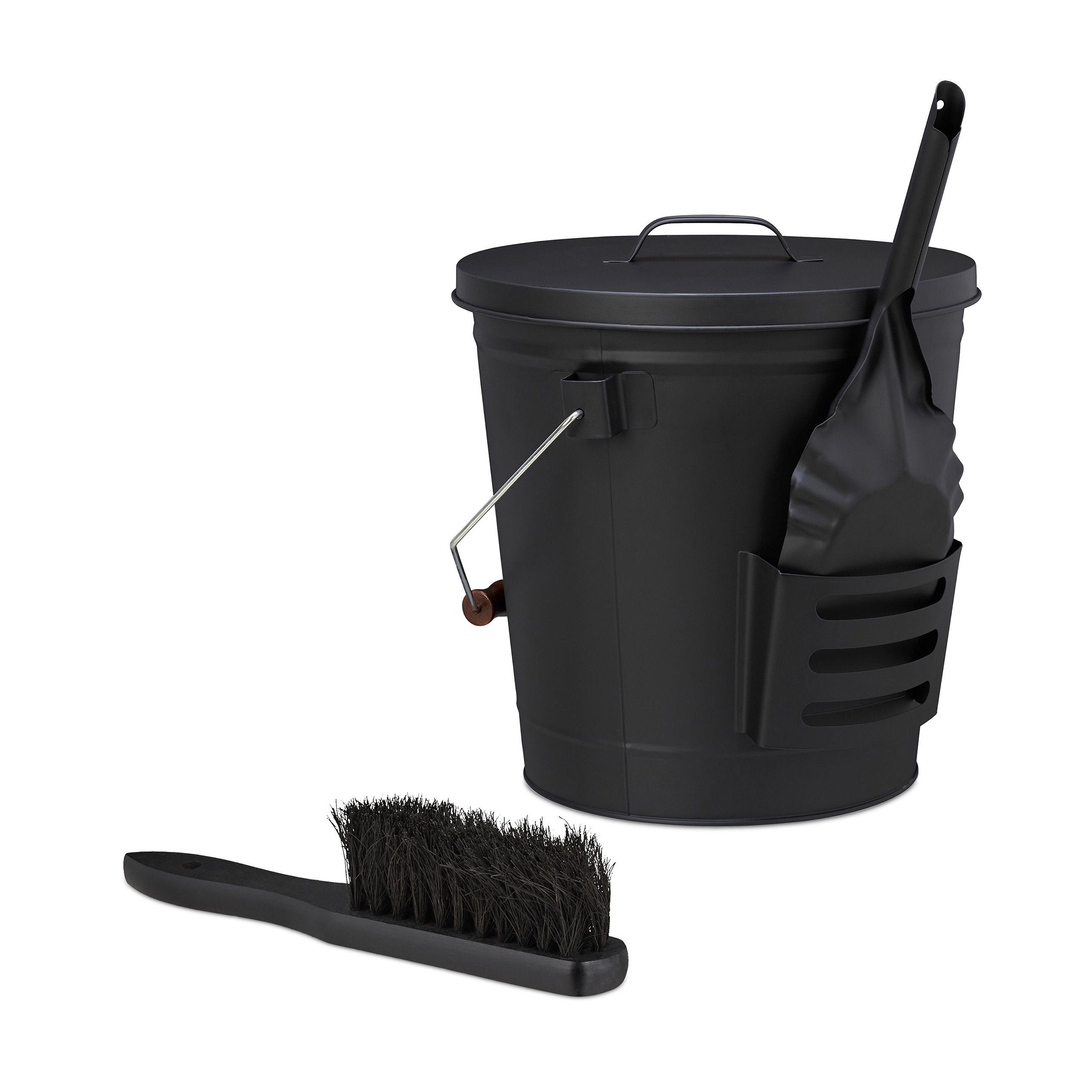 Praktisch: Kohleeimer mit Kaminschaufel und Aschebesen - Inklusive Deckel zum Schutz vor Verwehung