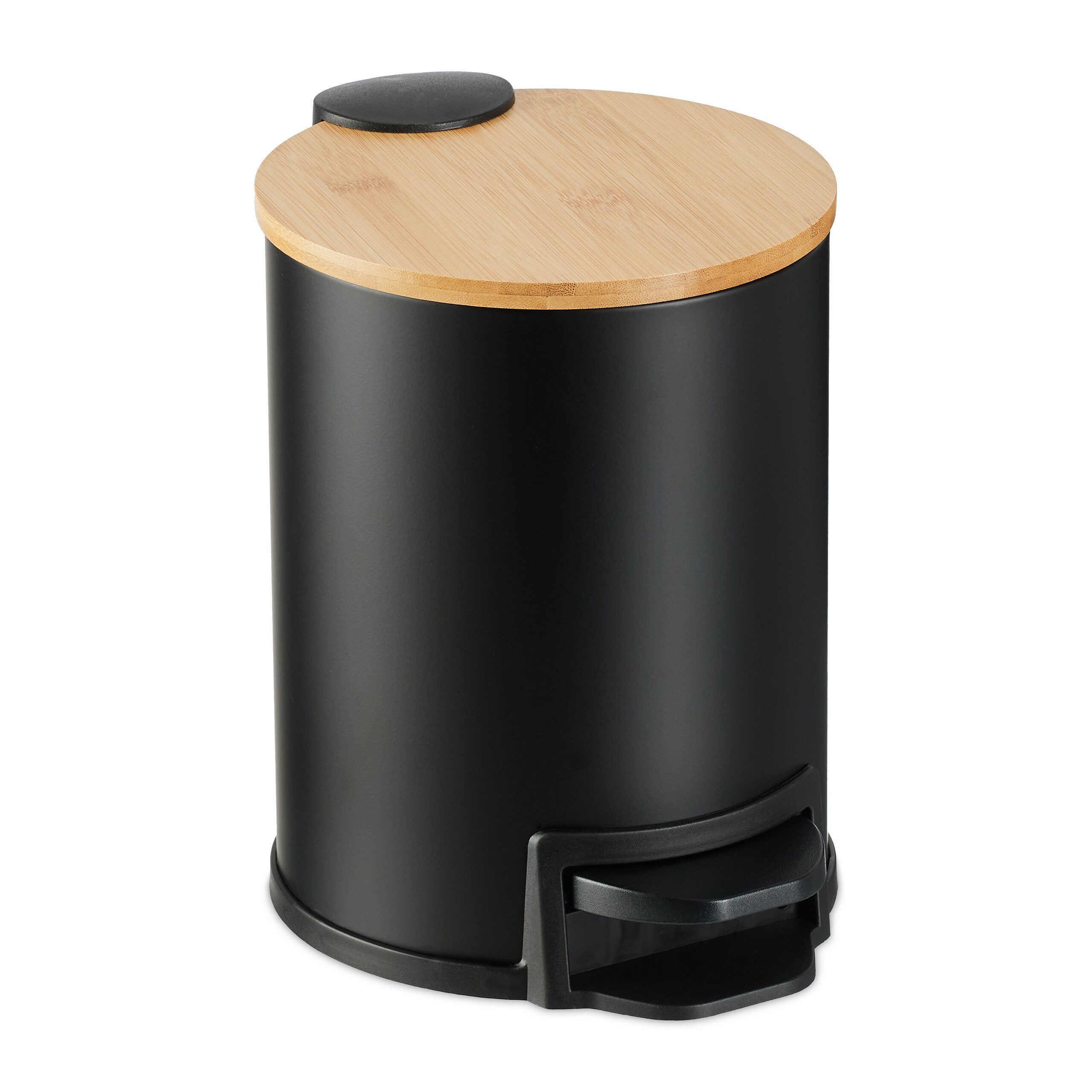 In dem runden Müllbehälter mit Bambusdeckel kannst Du hygienisch und komfortabel Deine Abfälle im Bad oder am Schminktisch entsorgen. Mit dem rutschfesten Trittpedal lässt sich der Badkübel freihändig öffnen. Das Спрятать des Deckels gelingt dank Soft-Close-Funktion besonders sanft und leise. Der entnehmbare Kunststoffeimer sorgt für ein leichtes Entleeren des Abfalleimers. Zudem setzt der schicke Materialmix aus mattem Eisen und Bambus moderne Akzente in Deinem Badezimmer.