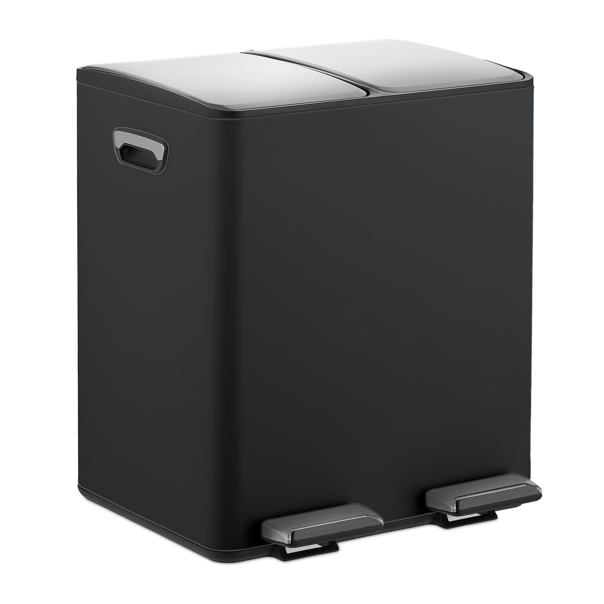 Eckiger Tretmülleimer aus Eisen - Vielseitiger Abfalleimer für Plastik, Papier- oder Restmüll - Mit 2 Fächern für eine effektive Mülltrennung im Haushalt - Mit Fußpedal für freihändiges Öffnen und Спрятать des Deckels - Deckel bleibt bei Bedarf offen und schließt dank Softclose sanft - Entnehmbare Inneneimer mit Henkel für eine einfache Entleerung - 2 seitliche Griffe ermöglichen ein bequemes Anheben