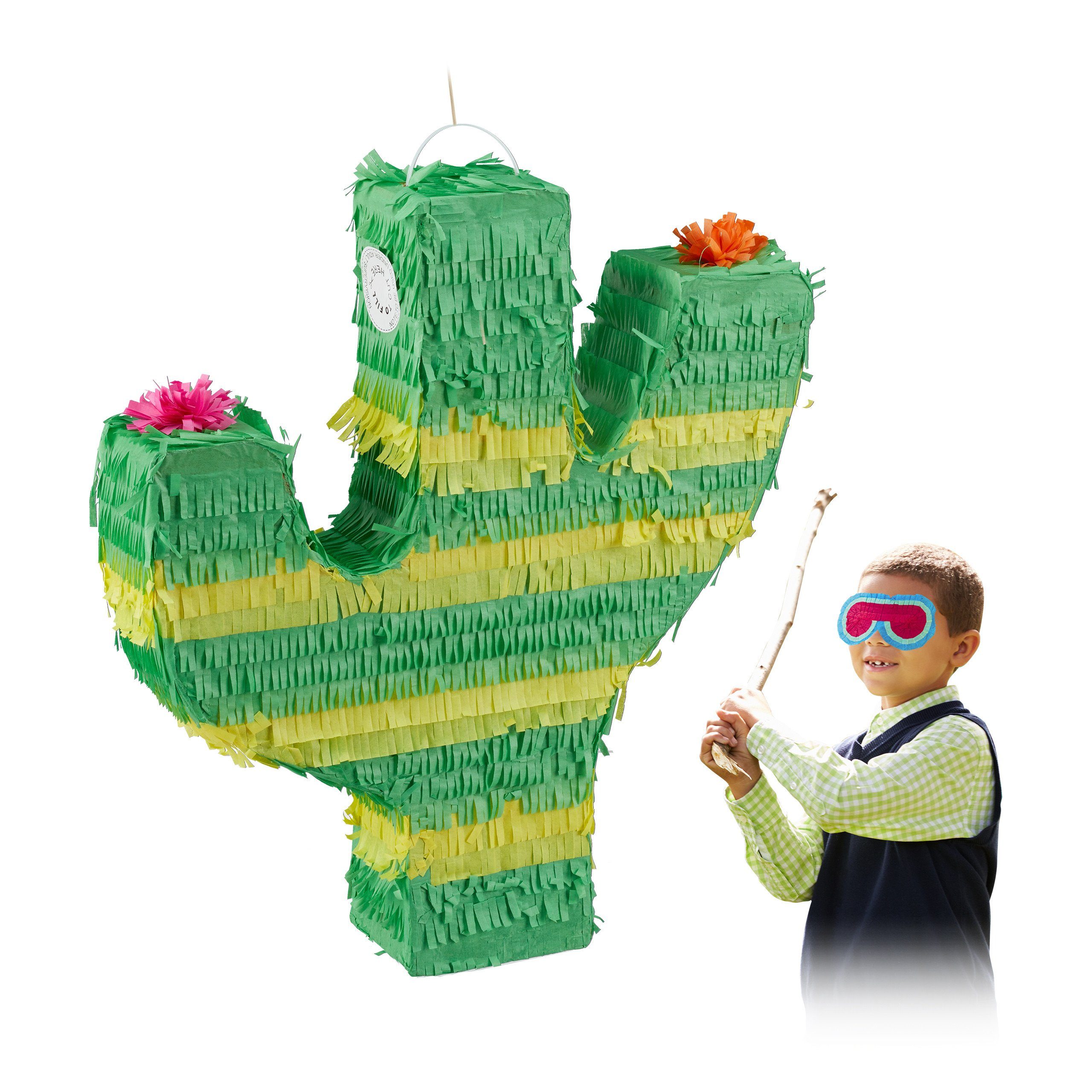 Mit dieser Kaktuspinata sorgen Sie im Handumdrehen für gute Stimmung auf dem nächsten Kindergeburtstag. Der grüne Kaktus kann mit Süßigkeiten, Spielzeug, kleinen Geschenken oder Konfetti befüllt werden. Die Kinder schlagen dann abwechselnd mit verbundenen Augen mit einem Stock auf die Pinata ein, bis sie aufplatzt und die Überraschungen herausfallen. Je höher die Pinata gehangen wird, umso größer ist der Schwierigkeitsgrad. Als lustige Partydeko sorgt der Kaktus für einen garantierten Blickfang.