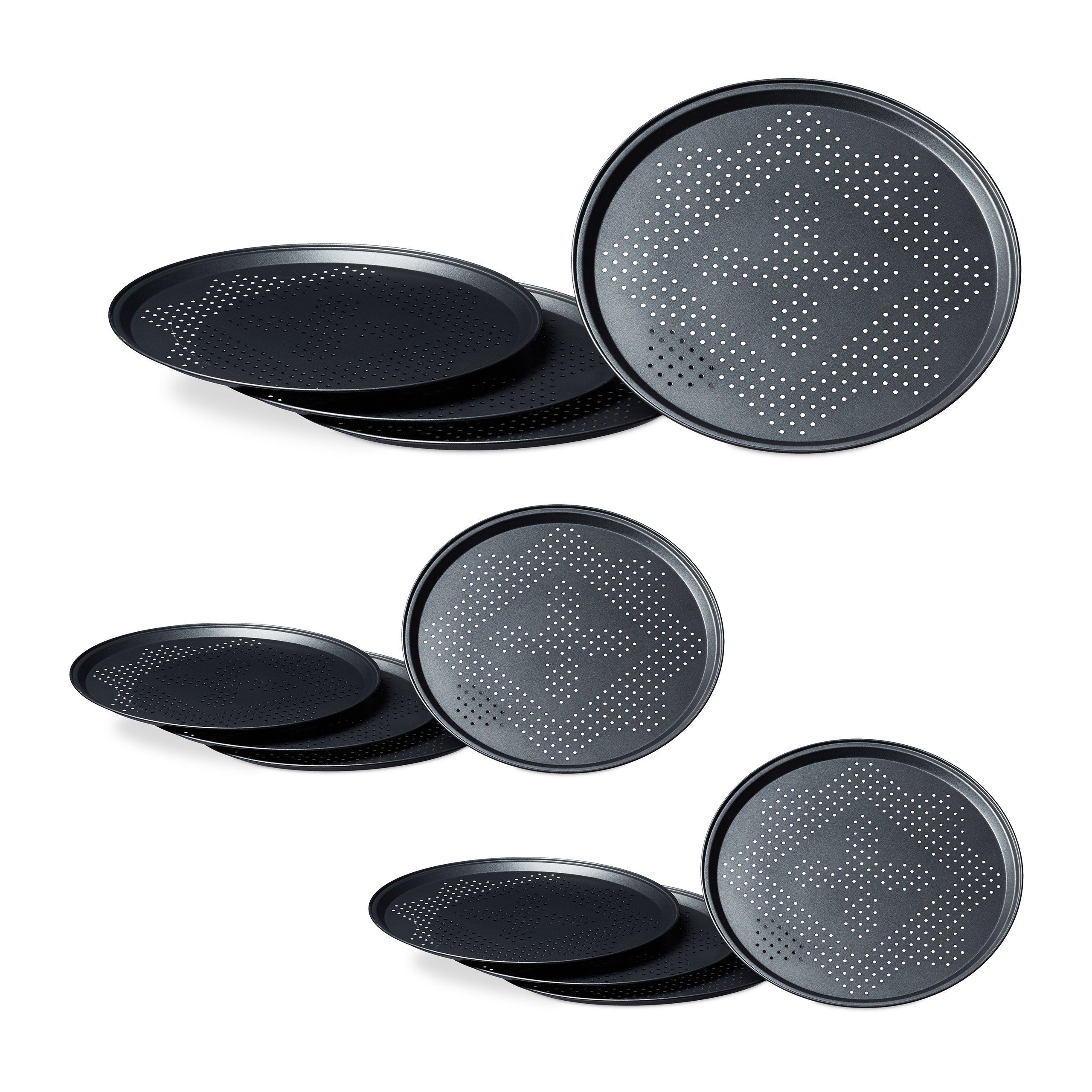 Bereiten Sie mit diesem Pizzabäcker-Set mehrere Pizzen gleichzeitig zu. Die runden Backbleche werden einfach auf den Rost Ihres Backofens gestellt. Belüftungslöcher in den Blechen sorgen für einen knusprigen und gleichmäßig durchgebackenen Boden. Dank der antihaftbeschichteten Oberfläche sind die Pizzableche im Anschluss einfach zu reinigen. Damit wird die Zubereitung von Pizza oder Flammkuchen zum reinsten Vergnügen. Um lange Freude an Ihrem Pizzabackset zu haben, vermeiden Sie den Kontakt mit scharfen und spitzen Gegenständen. Auch für die Spülmaschine ist es nicht geeignet. Einfach mit einem weichen Schwamm und Spülmittel reinigen.