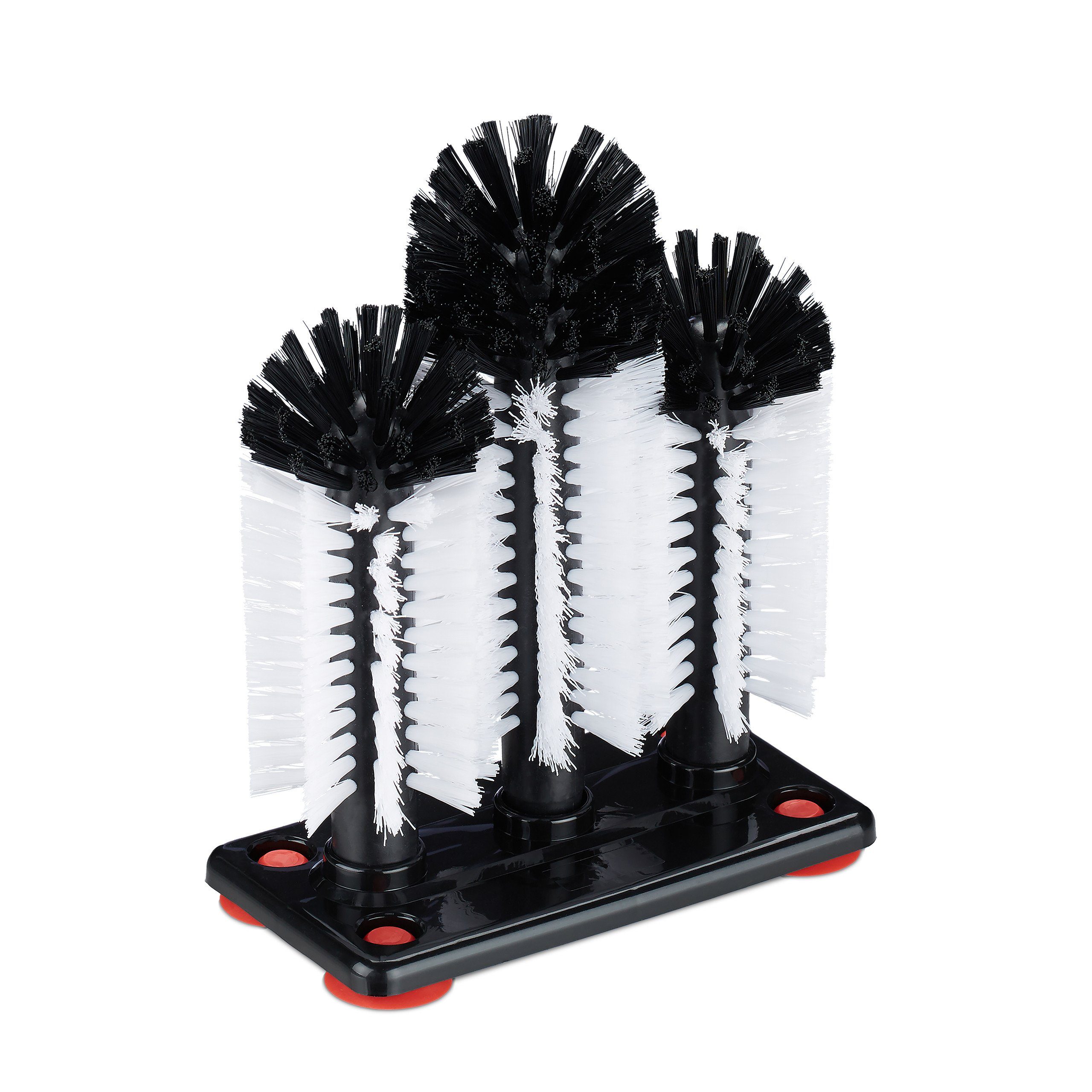 Im Pub, Sportverein oder auf großen Feiern Zuhause fallen stets zahlreiche schmutzige Gläser an. Mit der Glasspülbürste können sie diese im Nu spülen und sorgen stets für frischen Nachschub. Die Bierglasbürste wird in das Spülbecken gestellt und steht dort dank der 4 Saugnäpfe rutschfest. Der Gläserspüler besitzt die richtige Größe, um auch Biergläser zu reinigen. Einfach das Glas auf die mittlere Spülbürste aufstecken und durch kleine Drehbewegungen innen wie außen abwaschen.