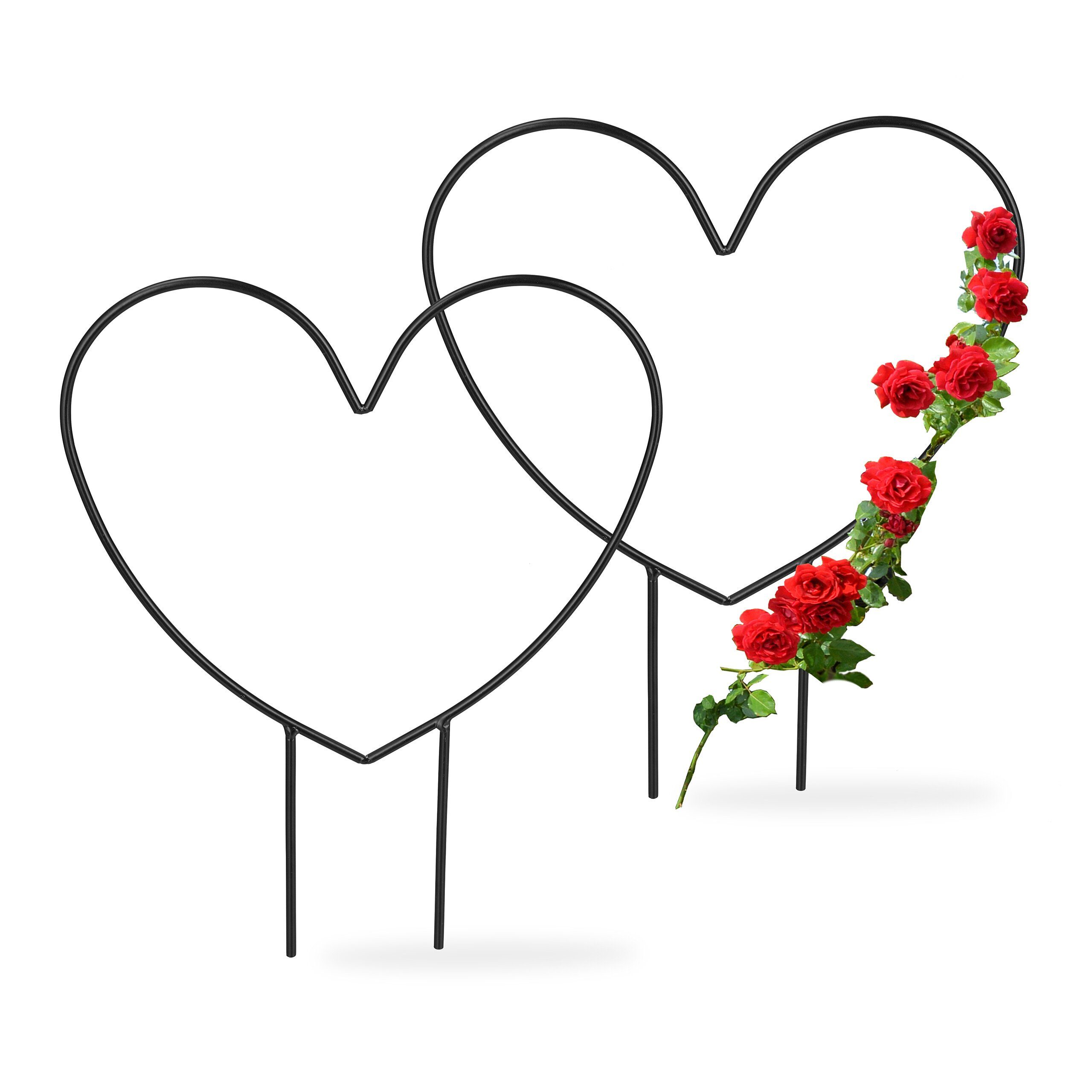 2er Set: Schwarze Pflanzenstütze in ausgefallenem Herz-Design - Sorgt für eine dekorative Wuchsform