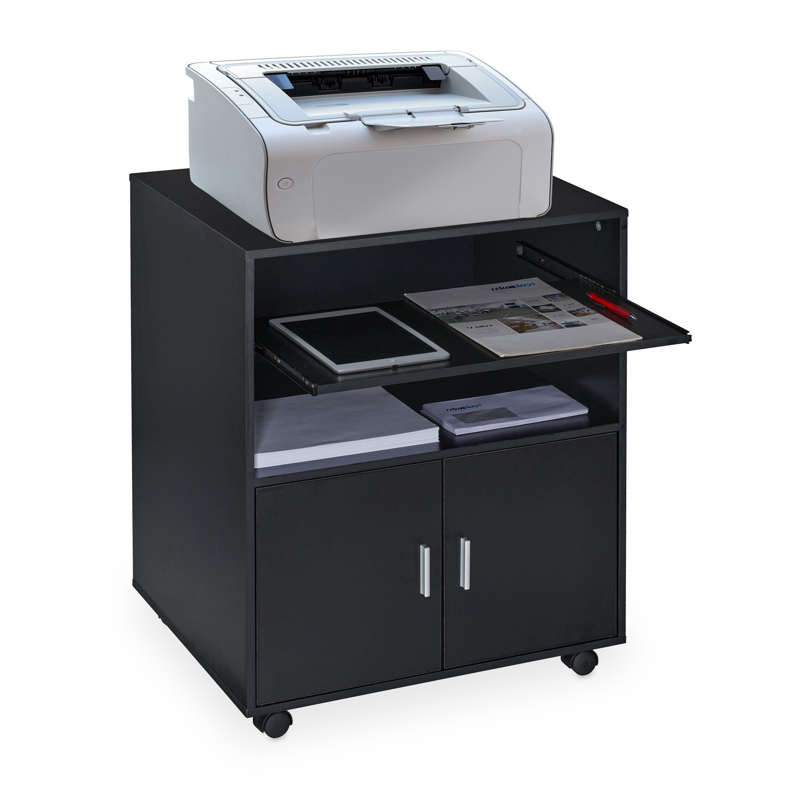 Effektives Arbeiten fängt schon mit der passenden Ausstattung an. Mit diesem praktischen Büro-Rollcontainer liegen wichtige Utensilien immer genau dort, wo Sie sie benötigen. Auf der oberen Ablage verstauen Sie Ihren Drucker, das Kopierpapier, Unterlagen und weiteres Bürozubehör finden in den Fächern Platz. Zusätzlich ist der schwarze Büroschrank mit einem Tastaturauszug ausgestattet. Dank der Rollen ist der Druckerschrank mobil und kann unkompliziert auch mal zur Seite geschoben werden.